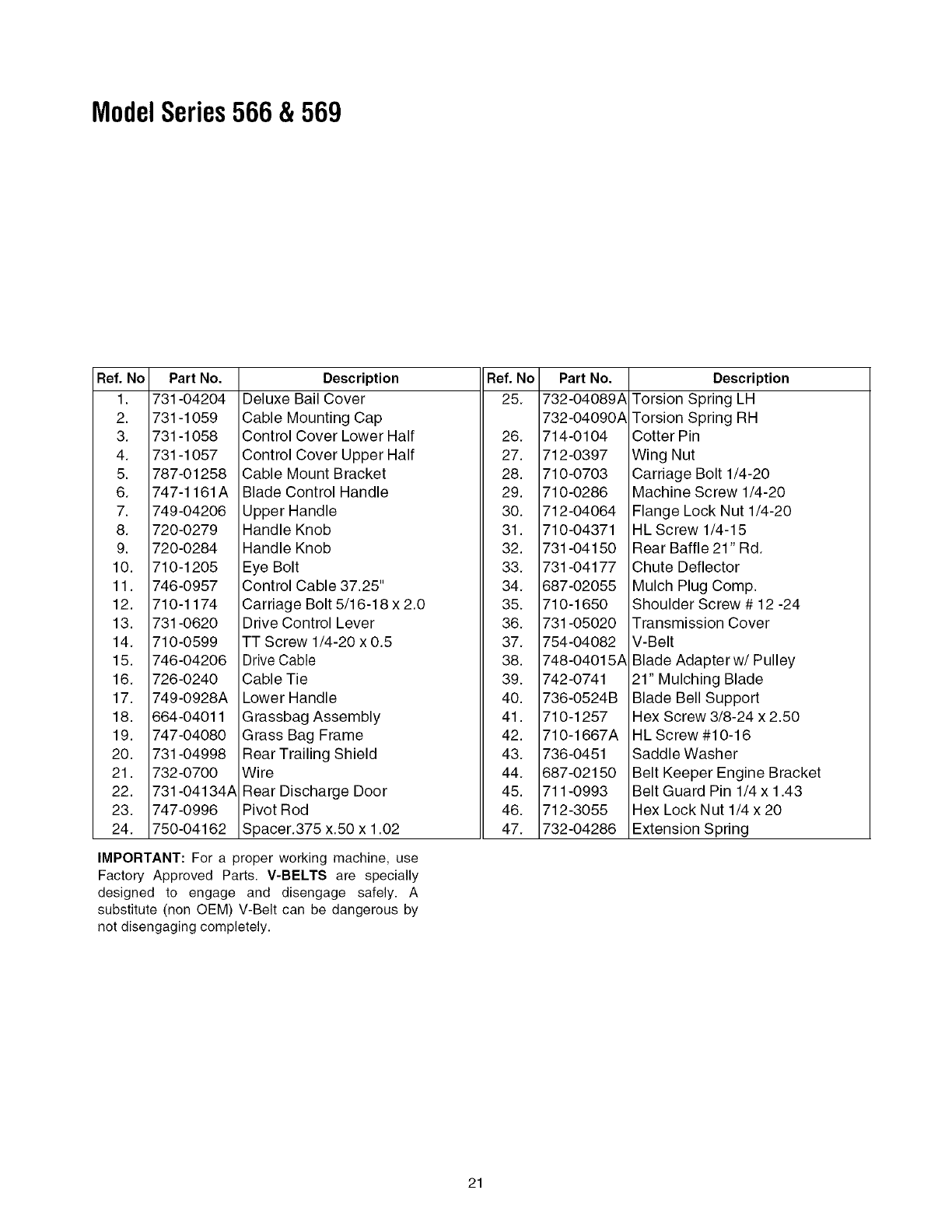 Factory Approved Parts. V-BELTS are specially