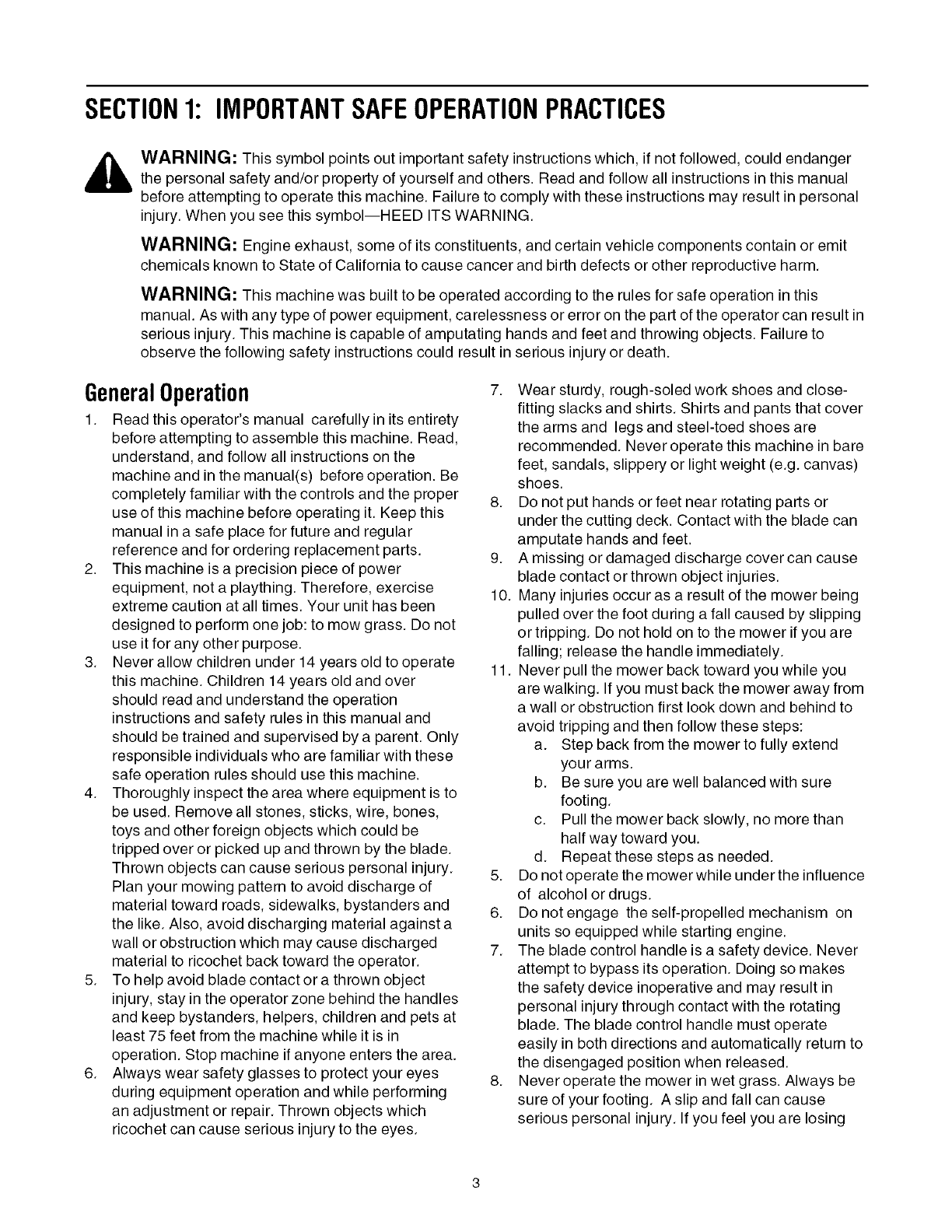 SECTION1: IMPORTANTSAFEOPERATIONPRACTICES
