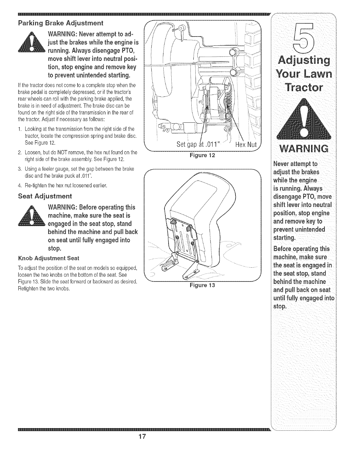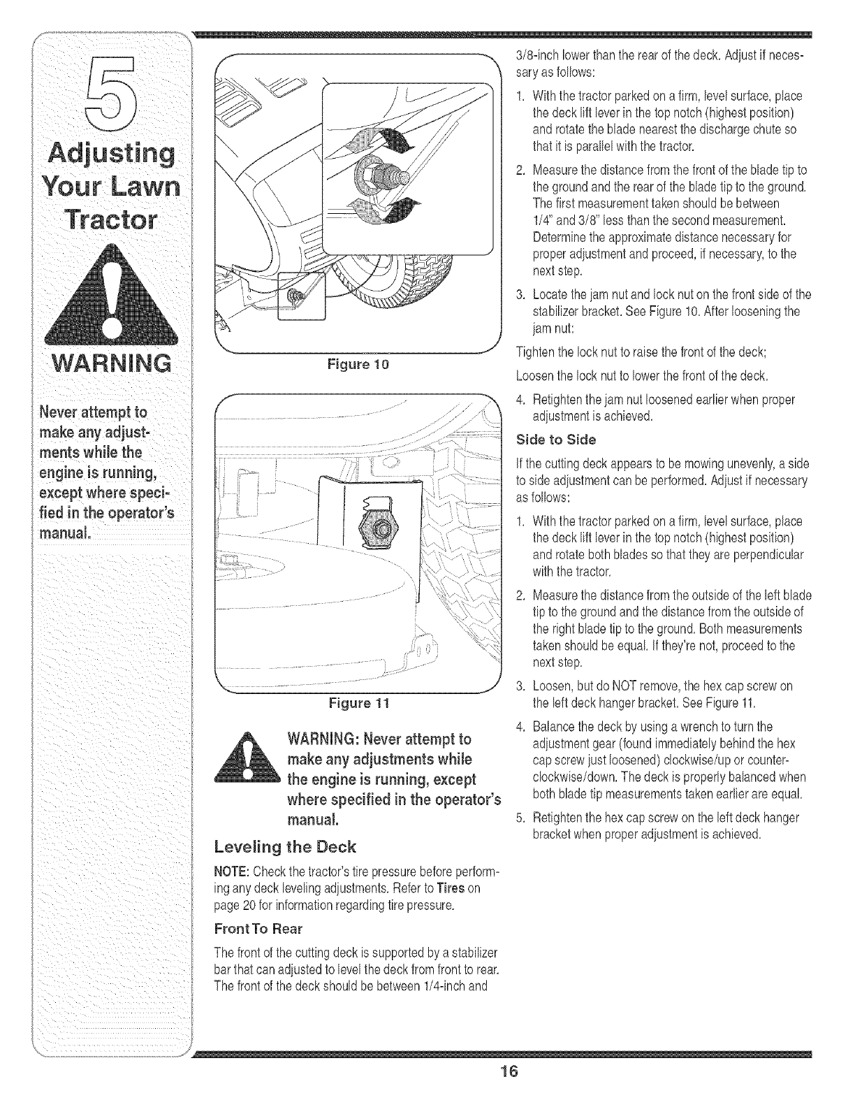 Adjusting Your Lawn Tractor ............................ 16