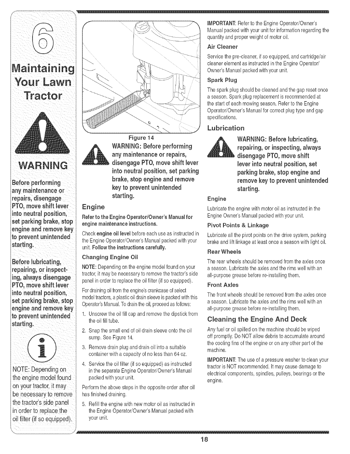 Maintaining Your Lawn Tractor ........................ 18