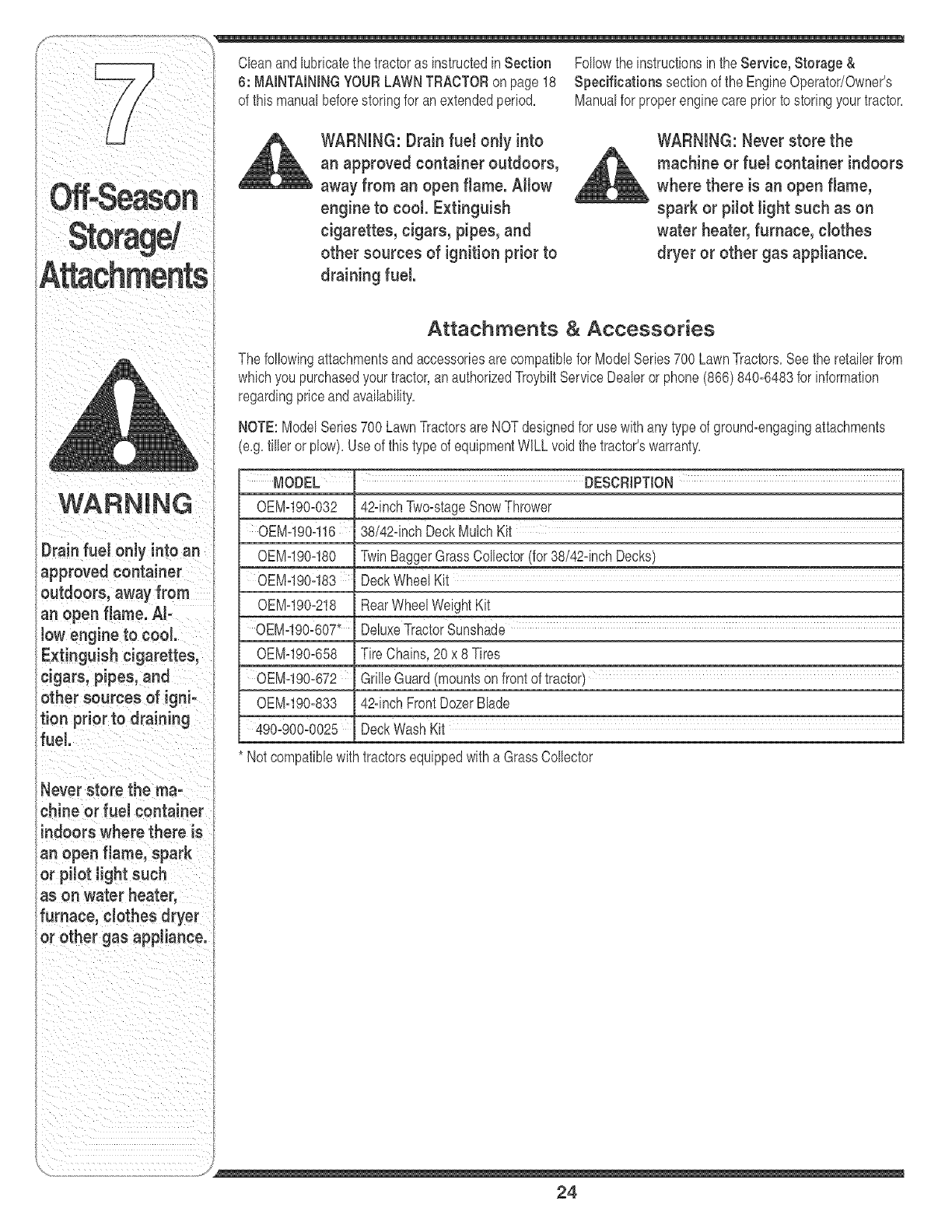 Off-Season Storage /Attachments ................. 24