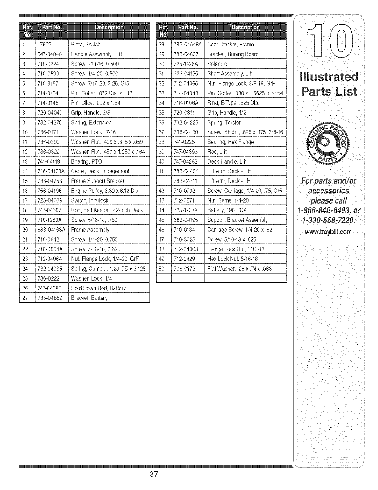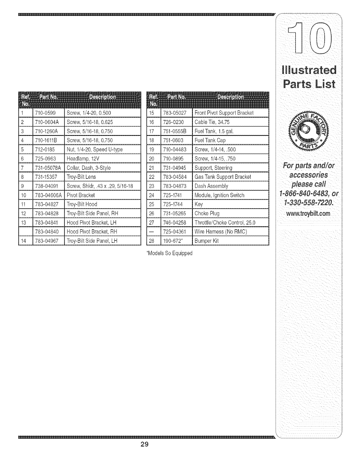 or contact Troy-Bilt LLC at RO. Box 361131,Cleveland, Ohio 44136-