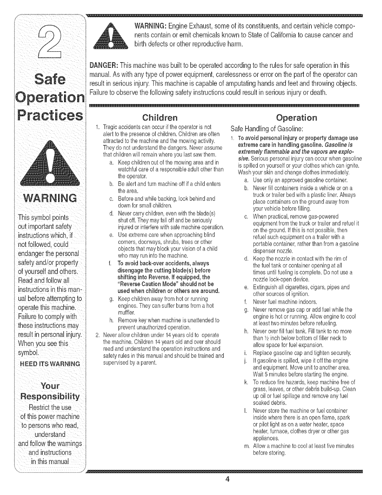 READ SAFETY RULES AND mNSTRUCTmONS CAREFULLY BEFORE OPERATmON