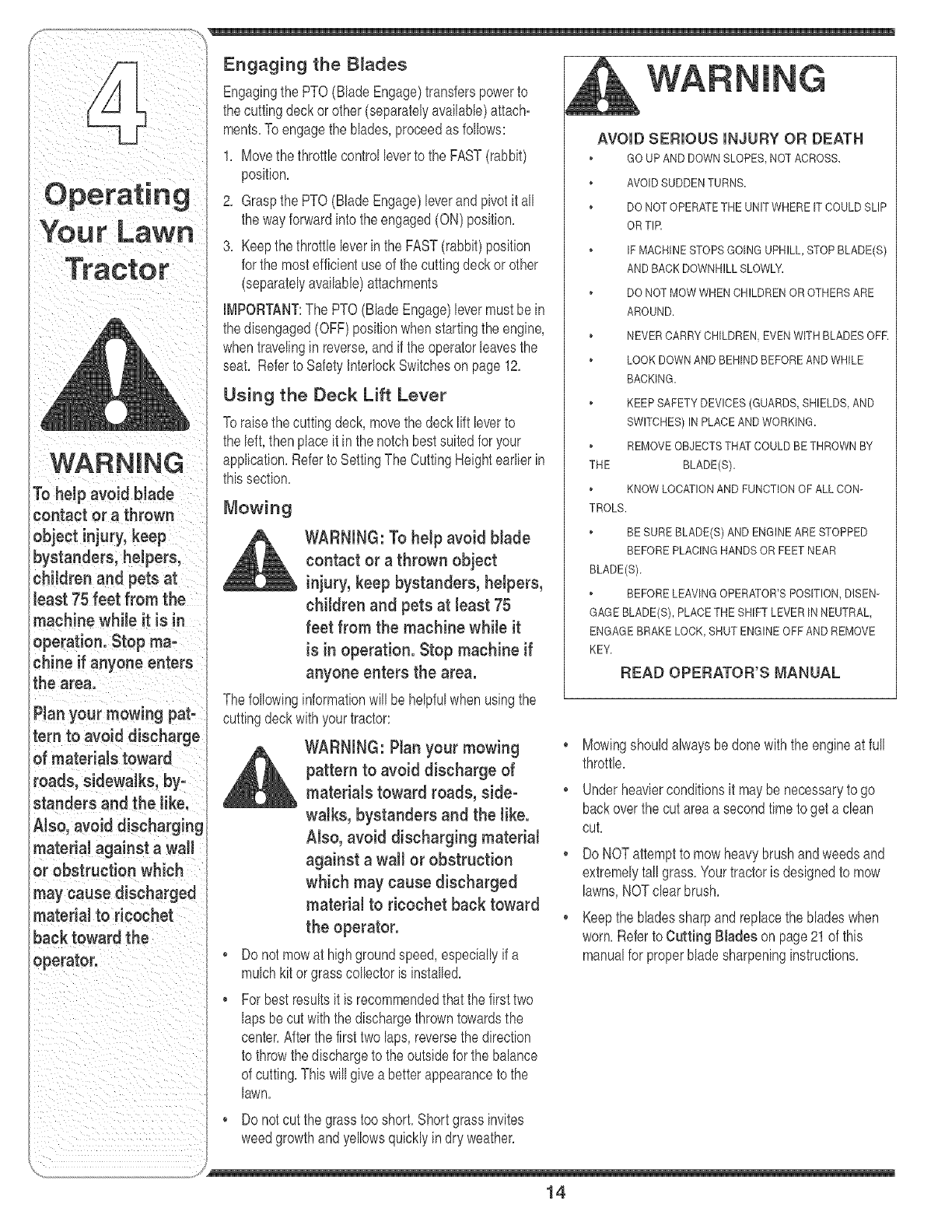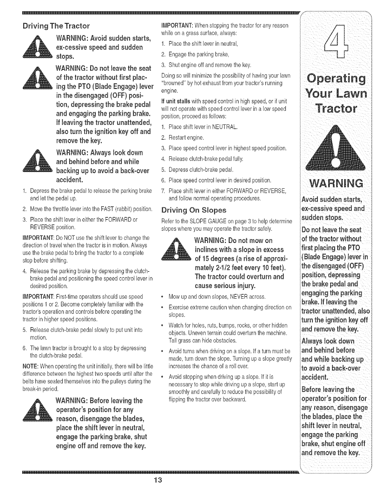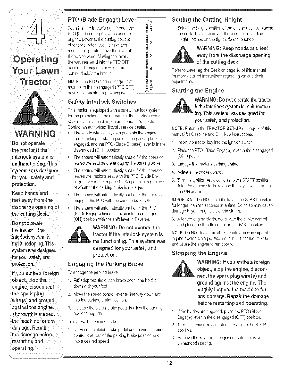 Operating Your Lawn Tractor ........................... 10