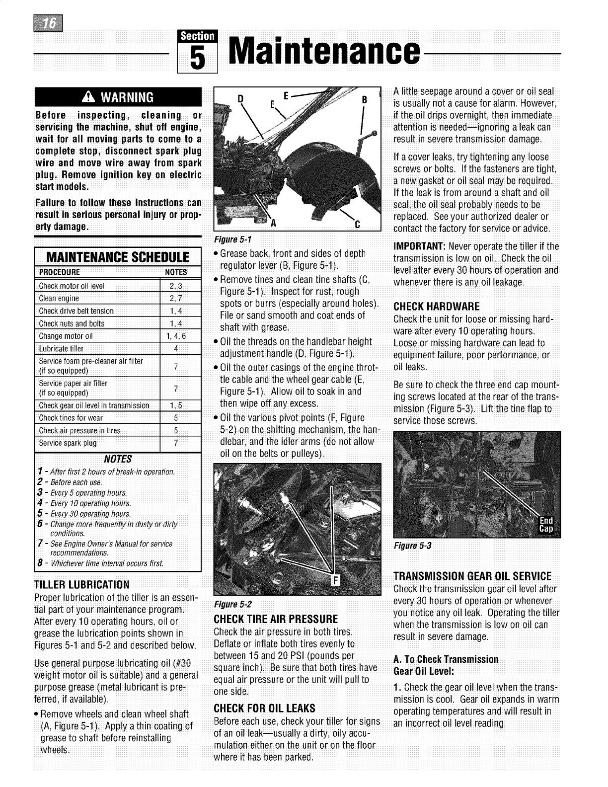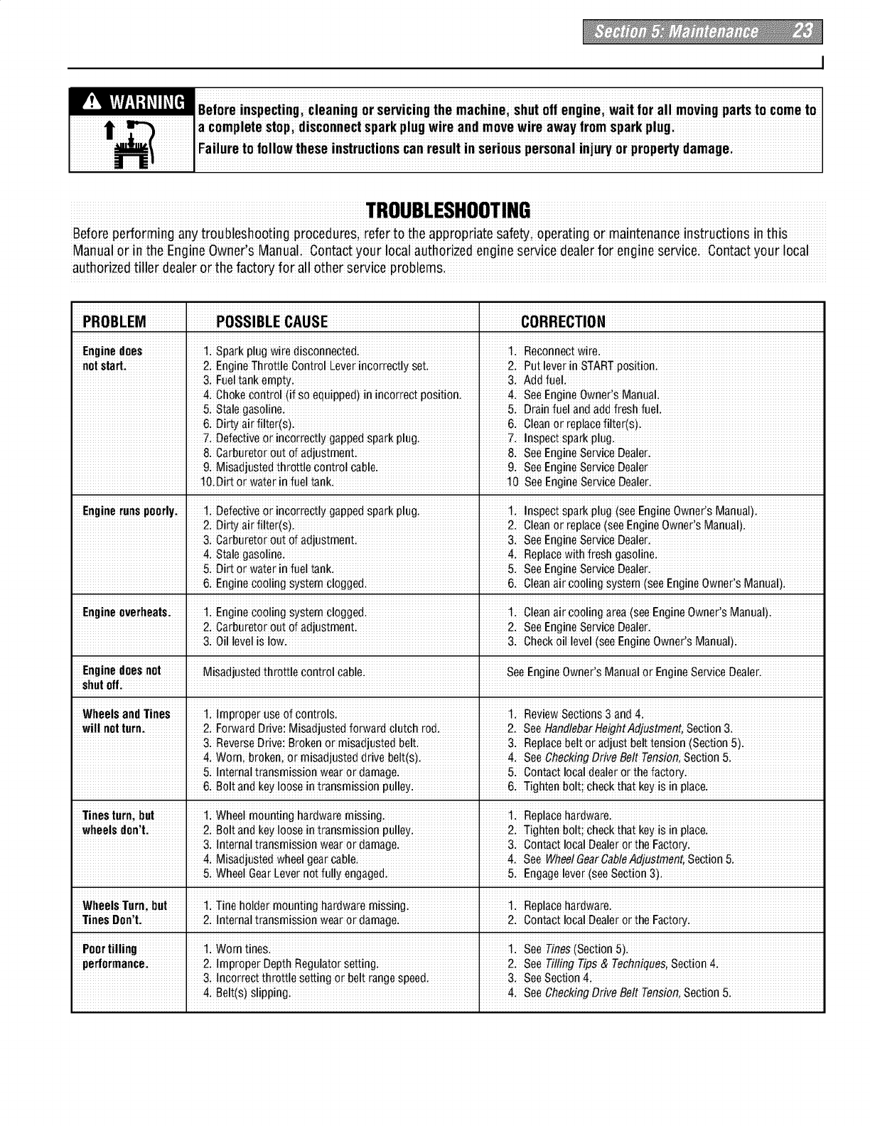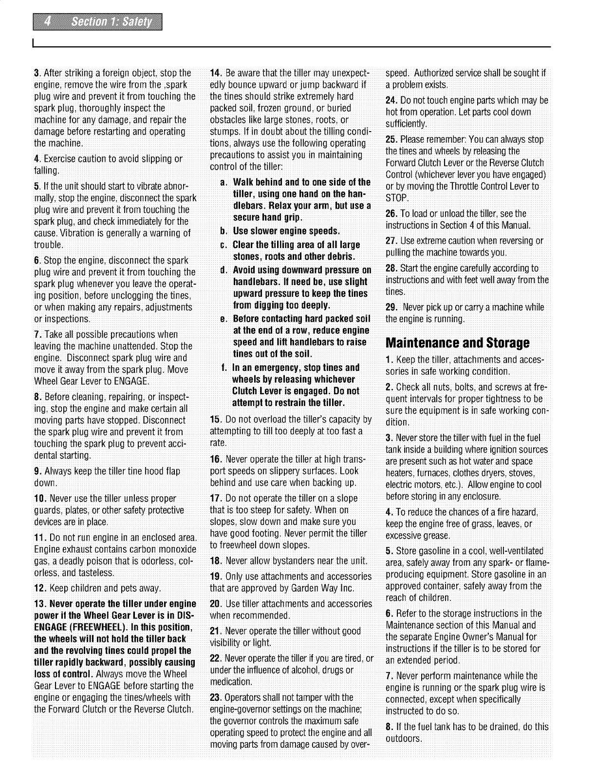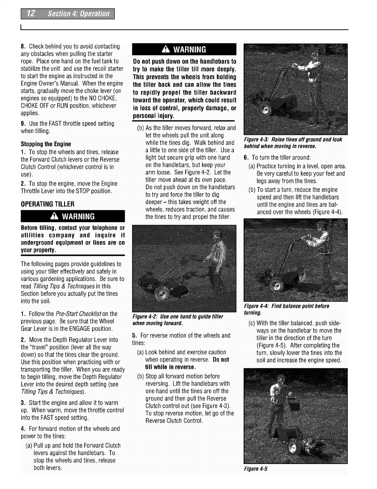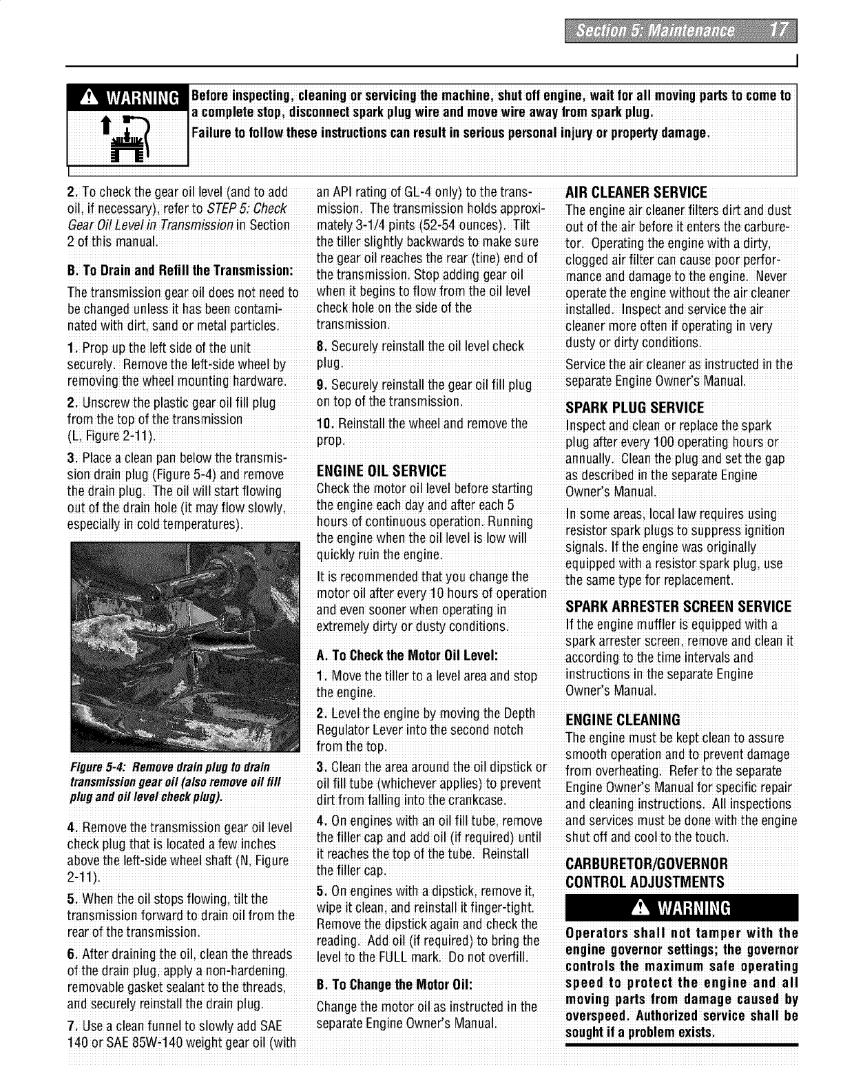 proper use of the tiller andits engine: footwear.Wear protectivefootwear that will l, lf fuel is spilledi donor attempt to