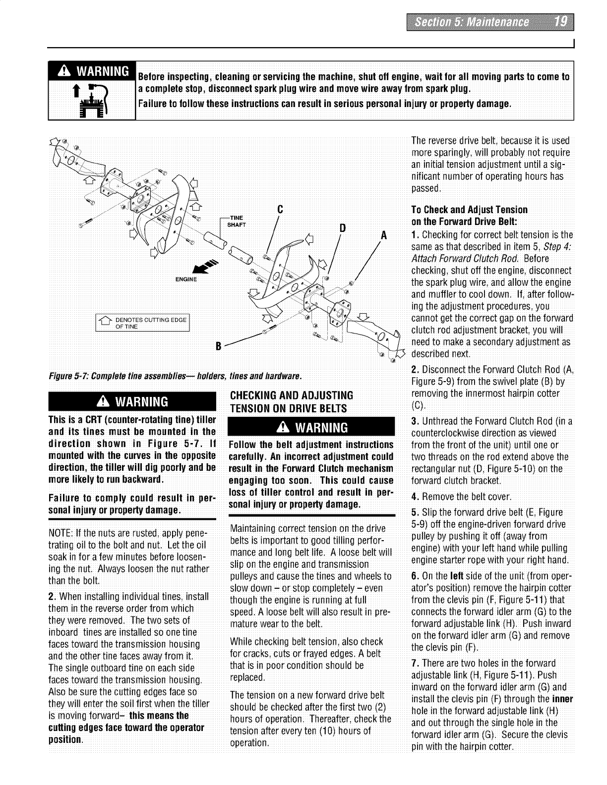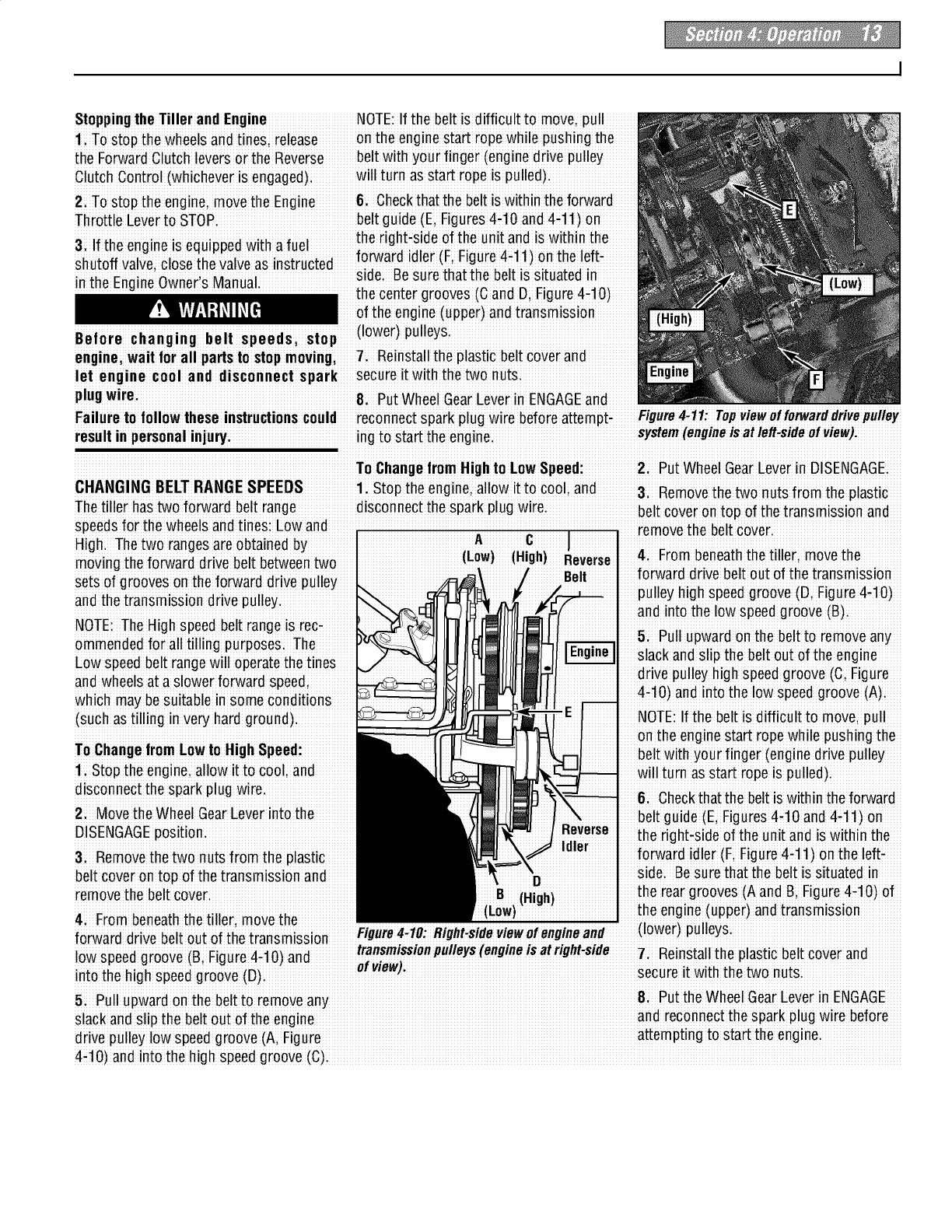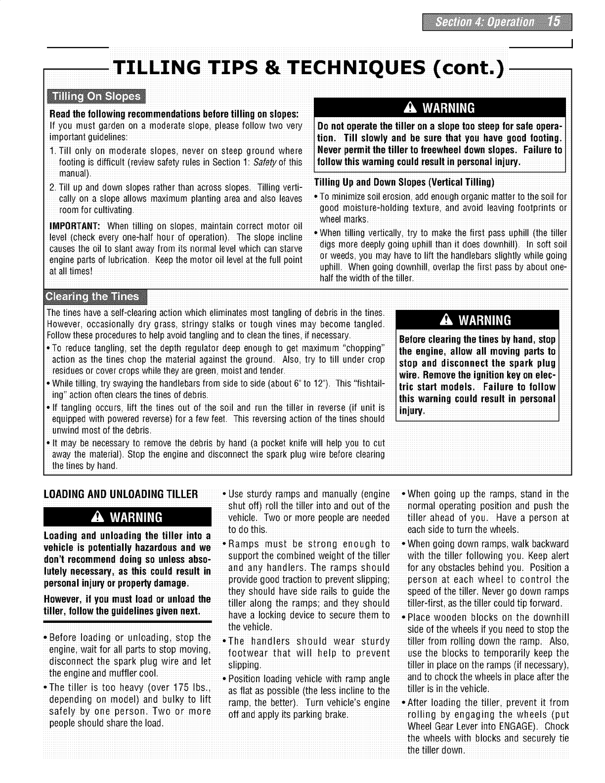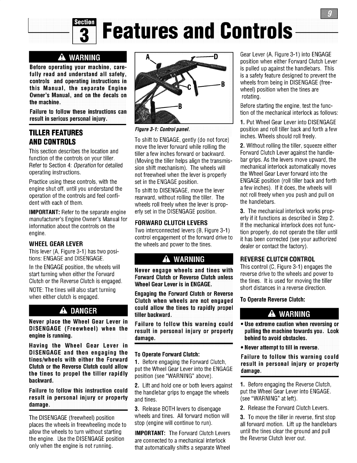 proper use of the tiller andits engine: footwear.Wear protectivefootwear that will l, lf fuel is spilledi donor attempt to