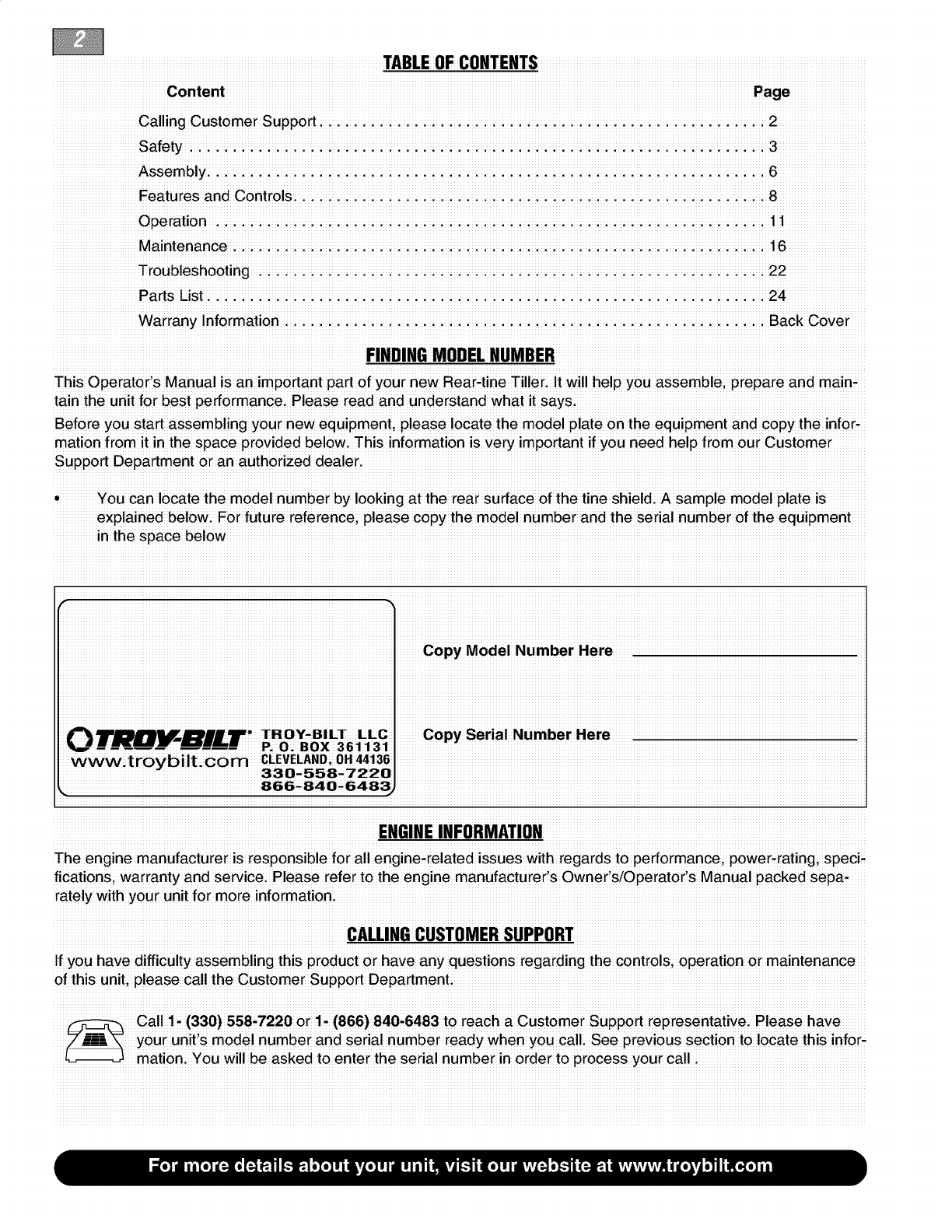TROY-BILT LLCi P.Oi Box 361131; ClevelandiOhio _136,_19i 1,866,_0,6483