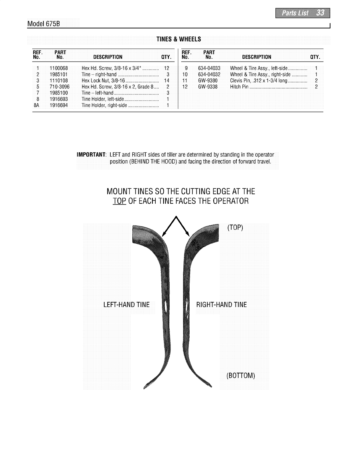 IMPORTANT: LEFTand RIGHTsides of tiller are determined by Standing in the operato