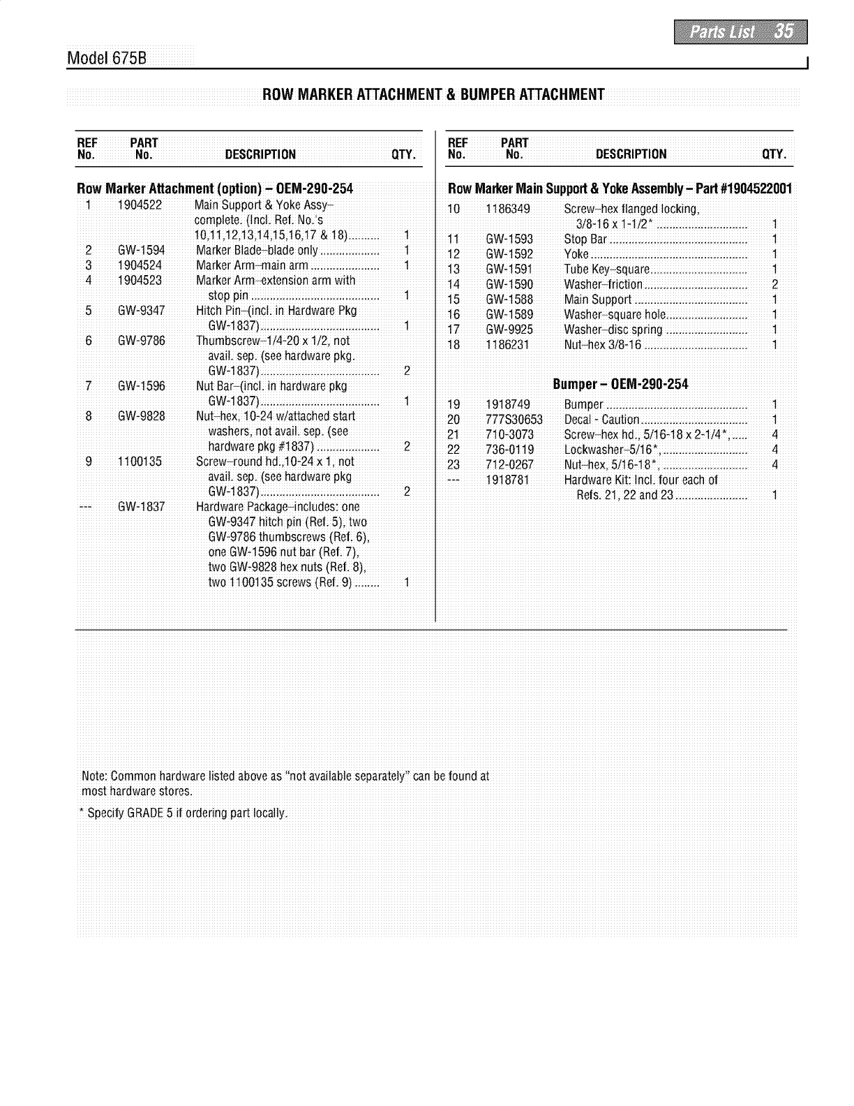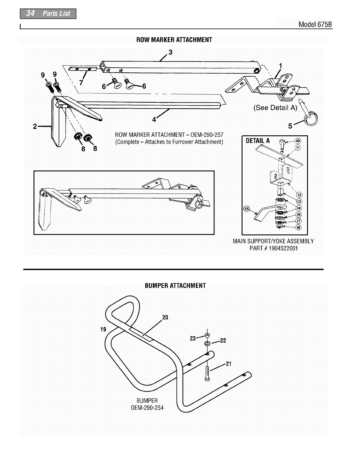RowMarker Attachment(option)-0EM-290,254, RowMarkerMain Support& YokeAssembly-Part #1904522001