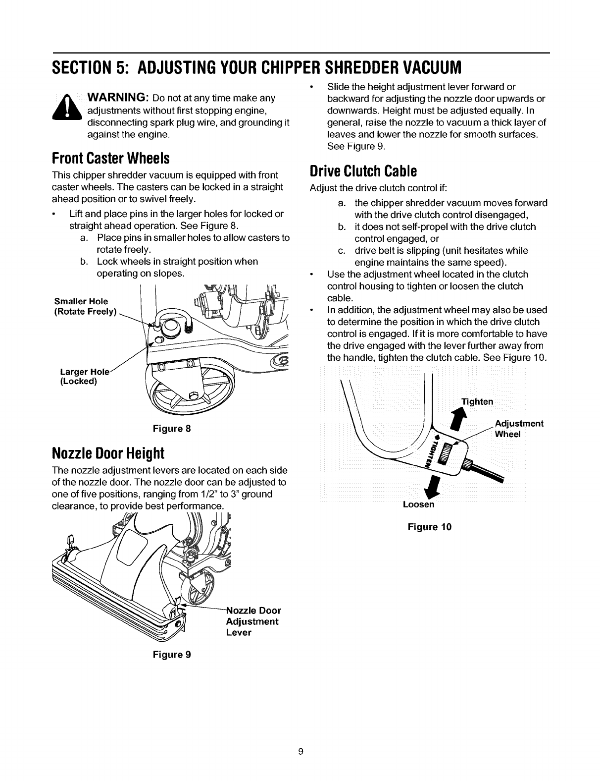 Adjusting Your Chipper Shredder Vacuum ........................................................... 9