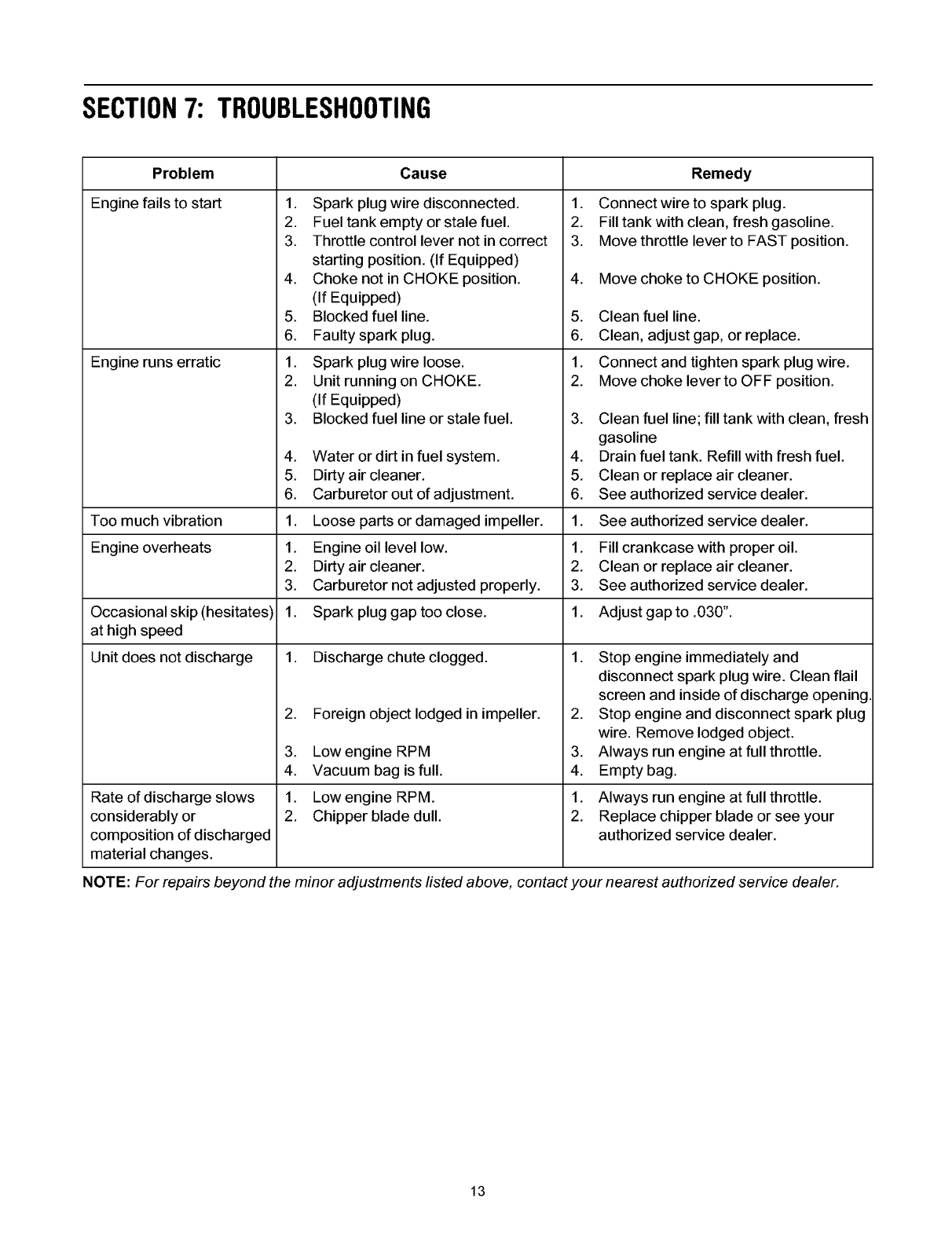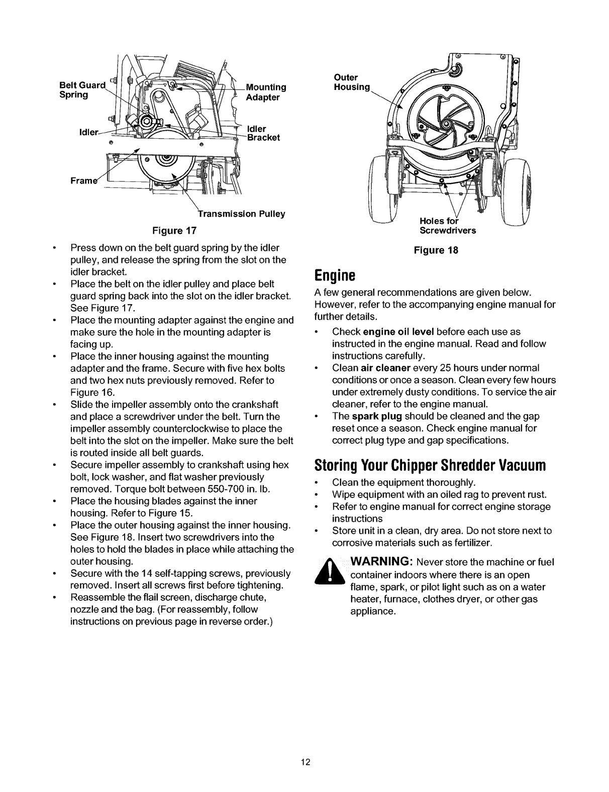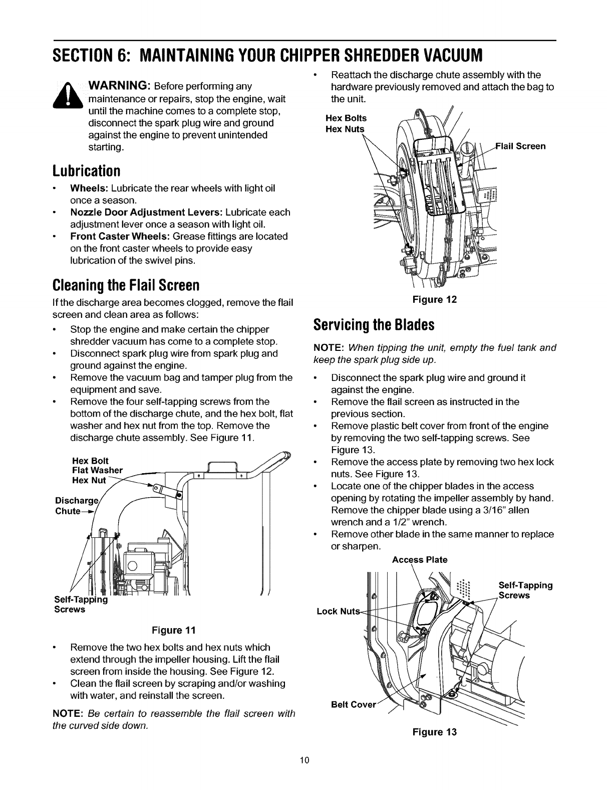 Maintaining Your Chipper Shredder Vacuum ....................................................... 10