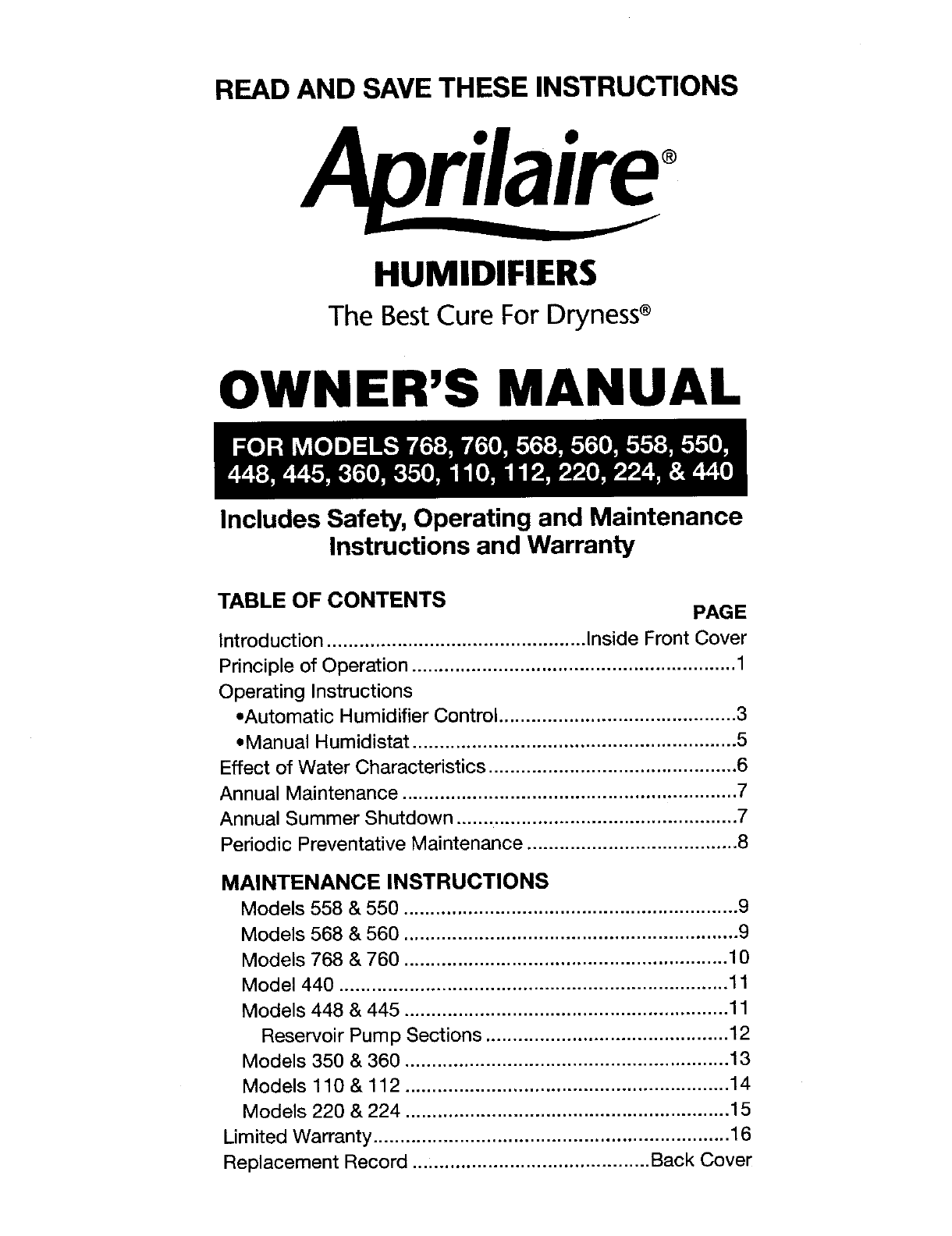 User Manual: Troybilt 440 440 APRILAIRE HUMIDIFIER - Manuals and Guides View the owners manual for your APRILAIRE HUMIDIFIER #440. Home:Heating & Cooling Parts:April Air Parts:April Air HUMIDIFIER Manual