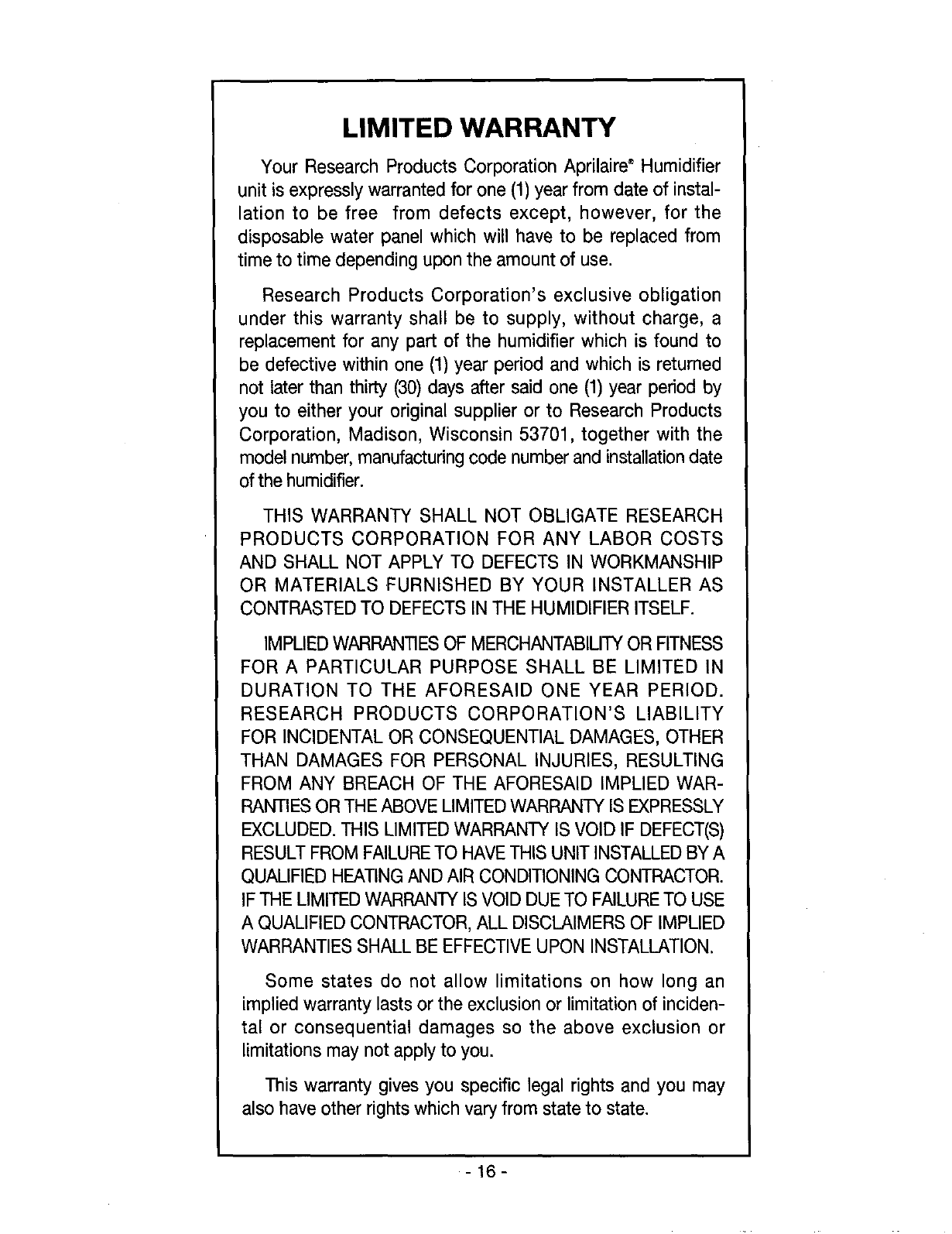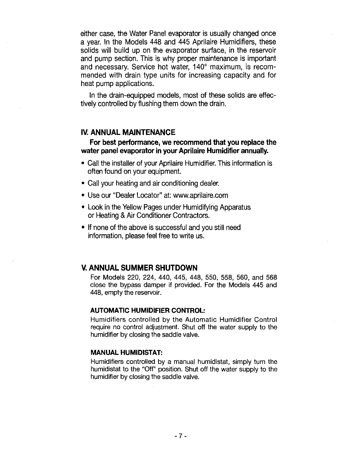 Troybilt 440 User Manual APRILAIRE HUMIDIFIER Manuals And Guides L0601259