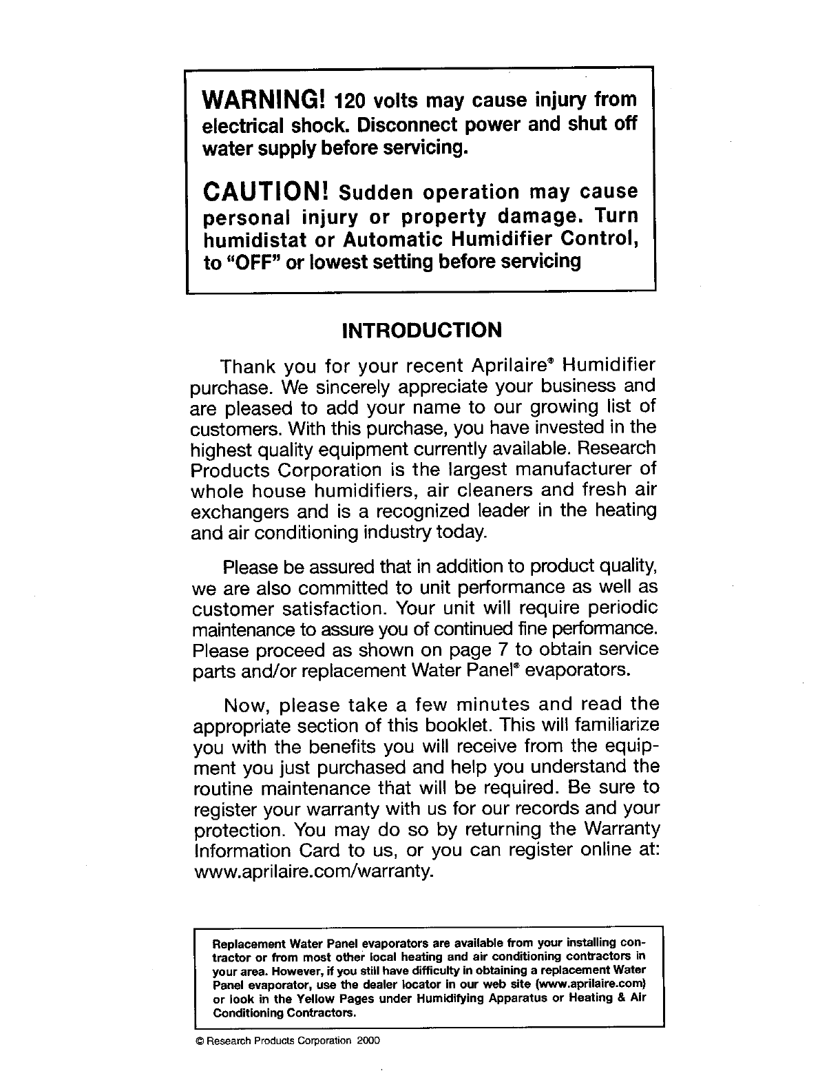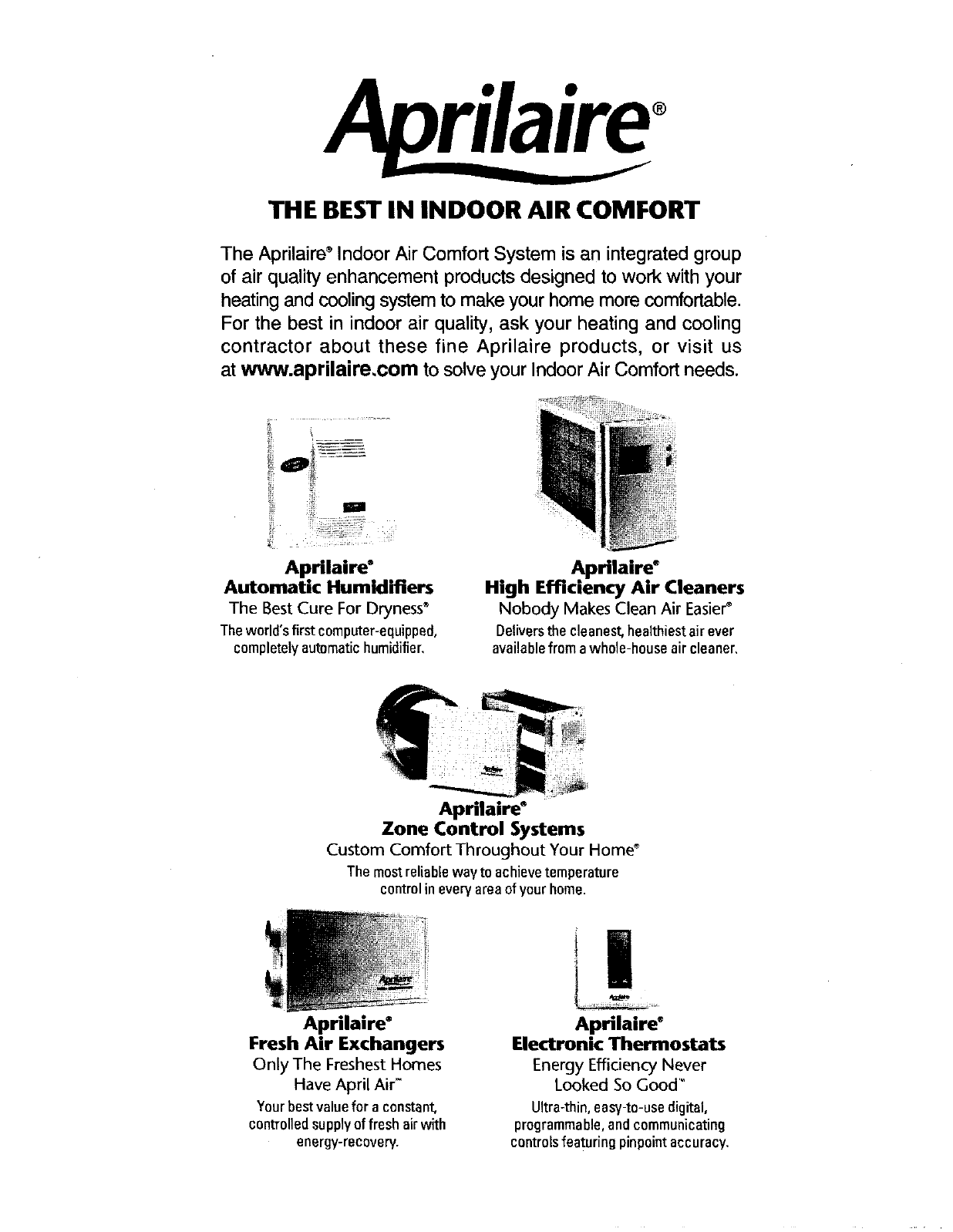 at www.aprilaire,com to solve your Indoor Air Comfort needs.
