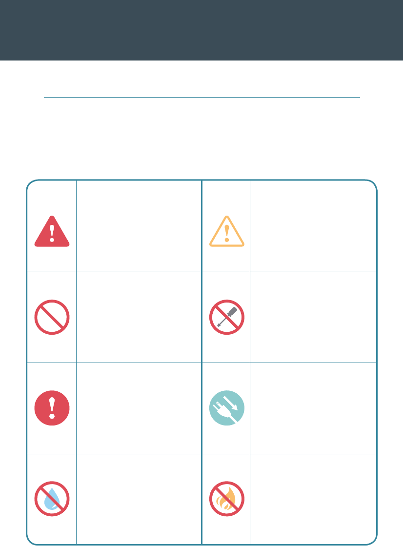 WARNING: To reduce the risk of burns, re, electric shock, or injury to persons:
