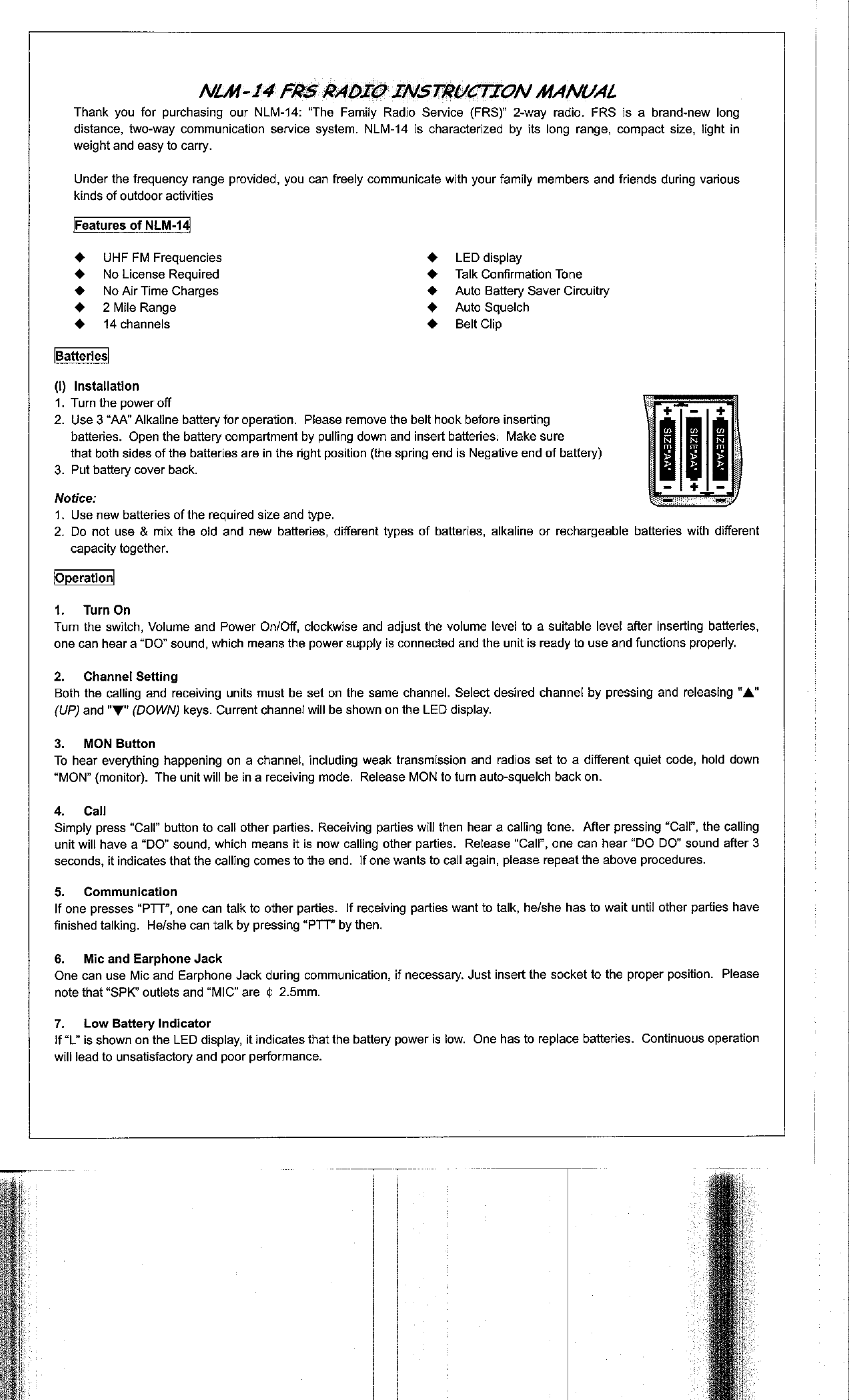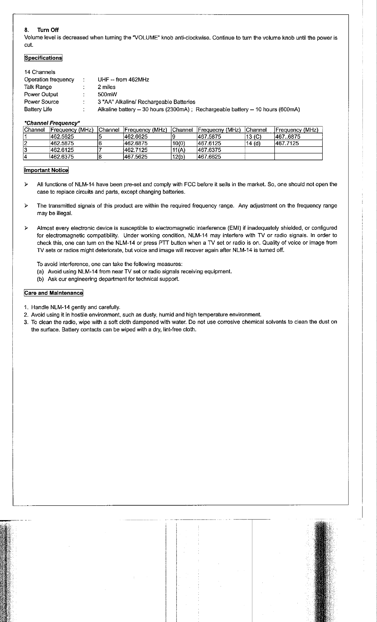 Tsuen Shing NLM14 14-Channel FRS User Manual
