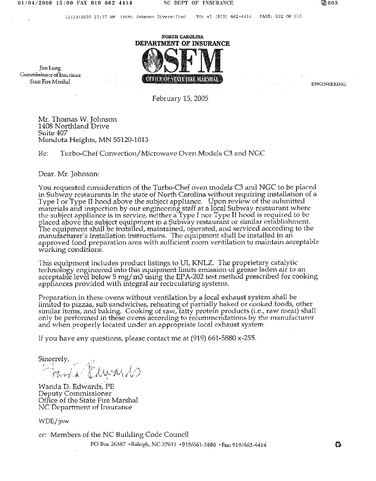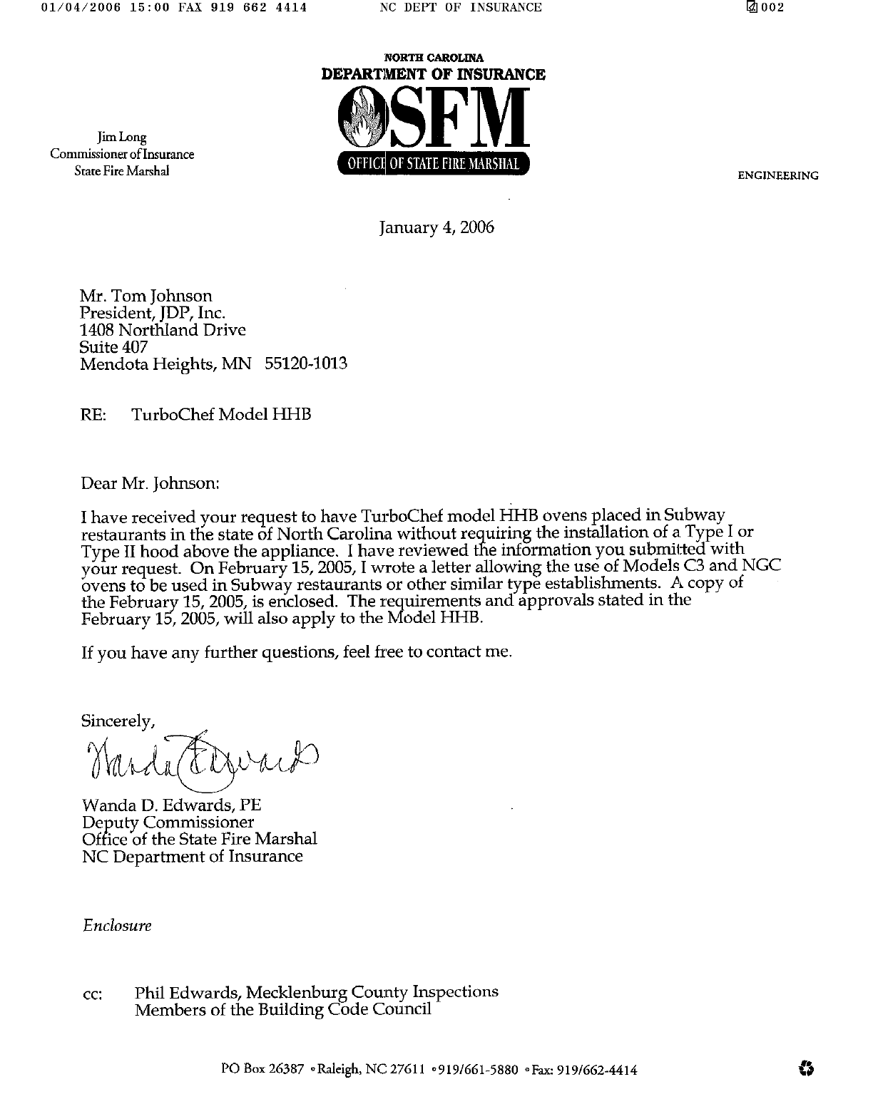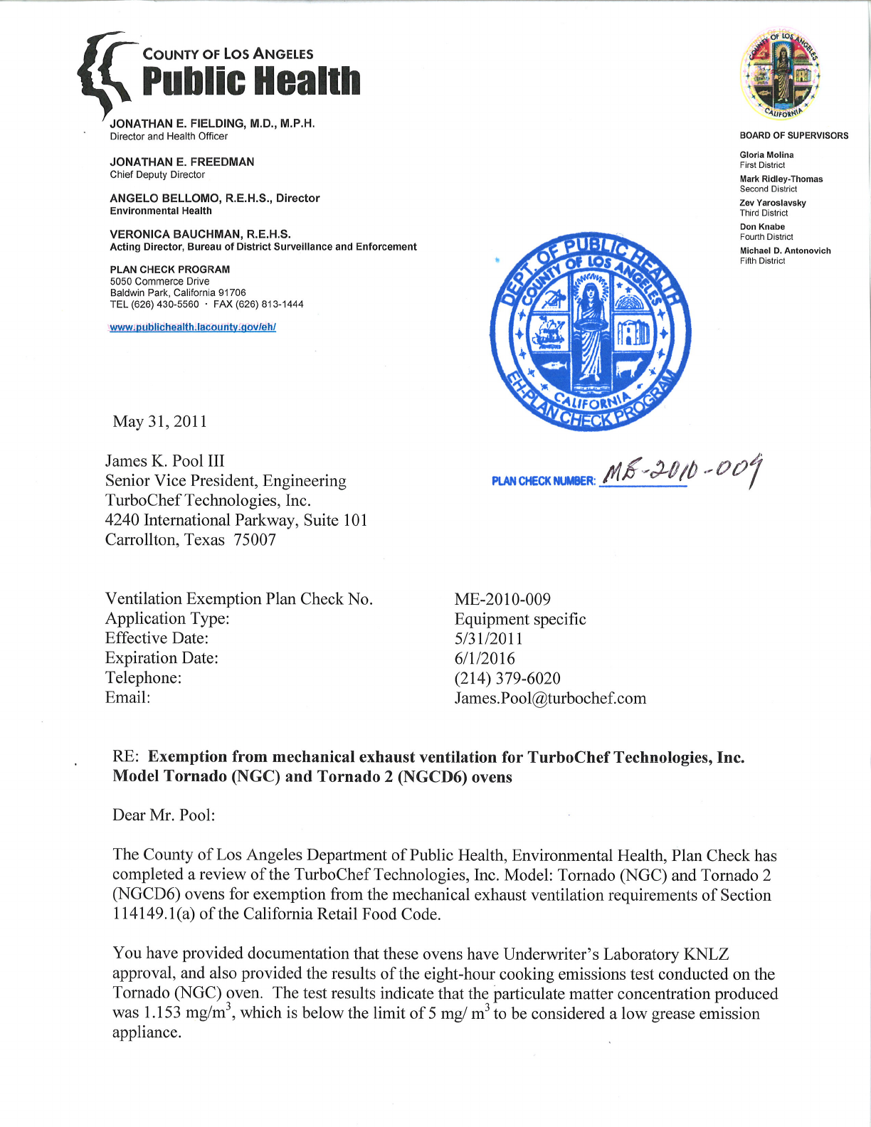 This letter may be used as evidence of the evaluation of the TurboChef Model Tomado (NGC) or