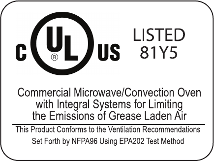 This product conforms to the ventilation recommendations set forth by NFPA96 using