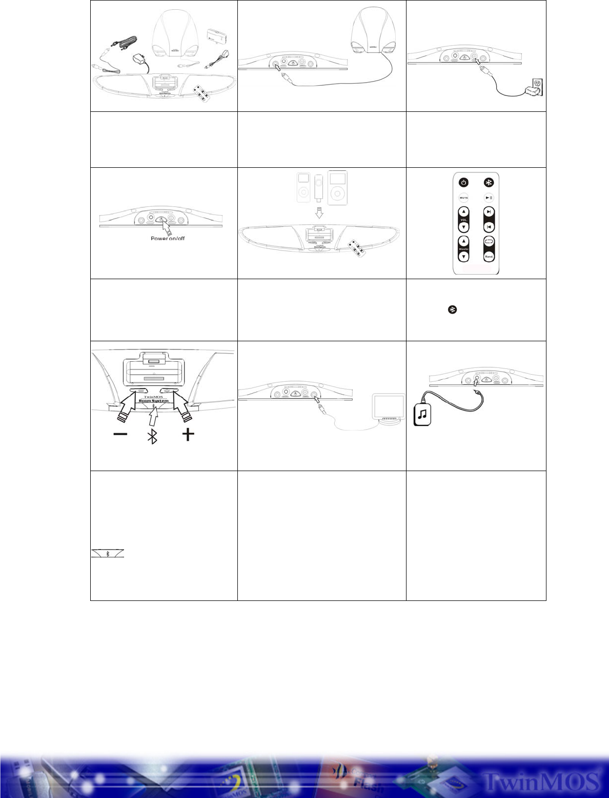 TwinMOS Technologies BTTA01 Bluetooth 2.1ch Audio System for iPod User Manual BooM2