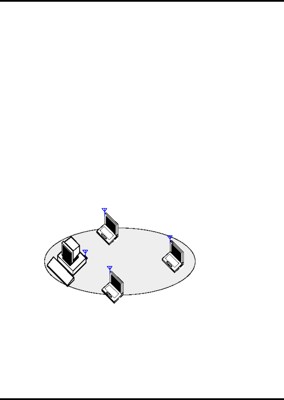 the 2.4GHz band. A wireless LAN does not require lining up devices for line of sight transmission like