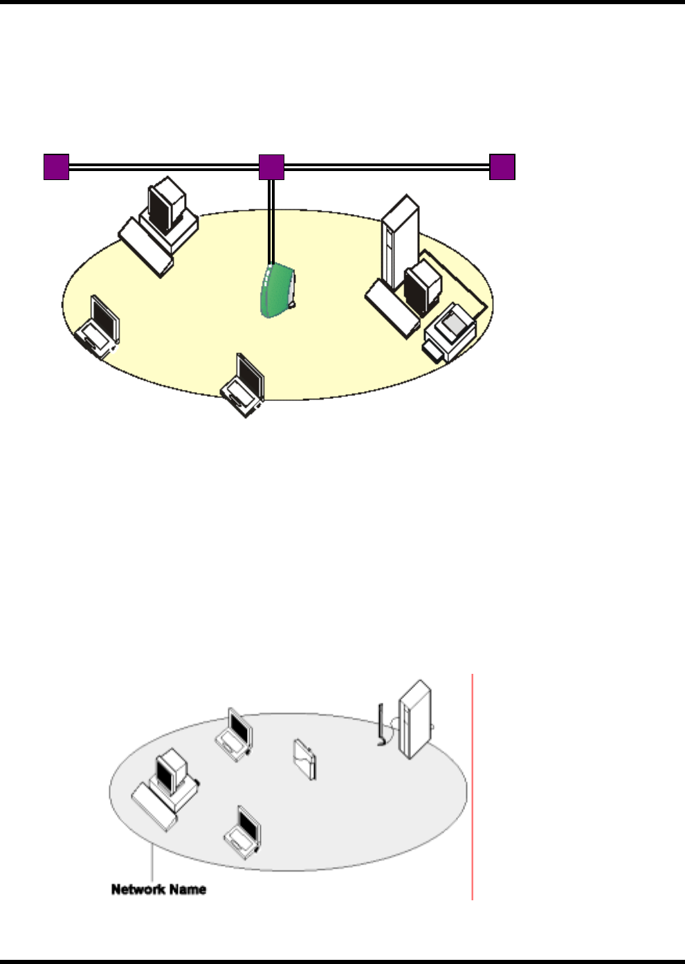 IrDA. Wireless access points (base stations) are connected to an Ethernet hub or server and transmit a