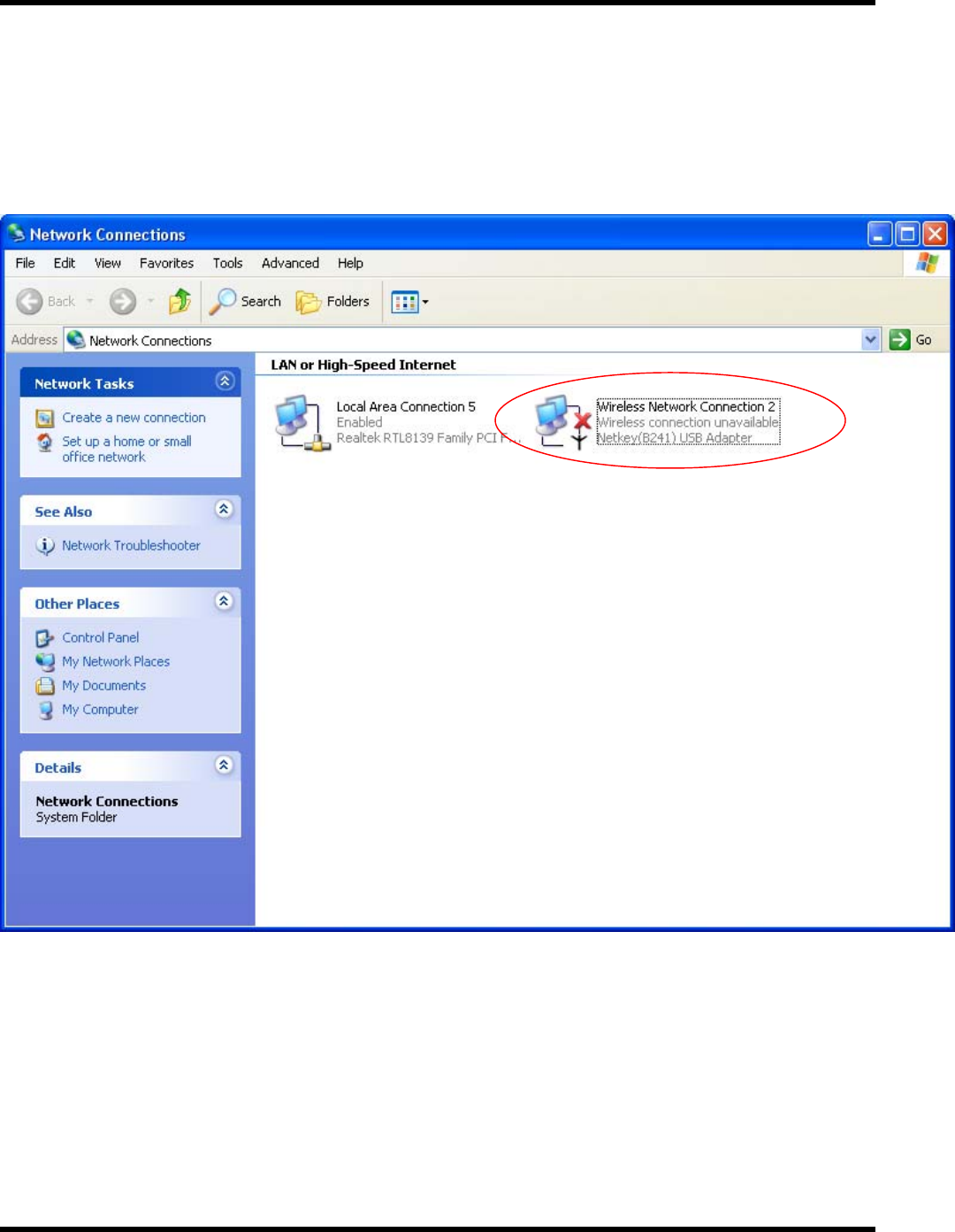 Double clicking on that will show you the status of the Netkey network adapter. If there are no error