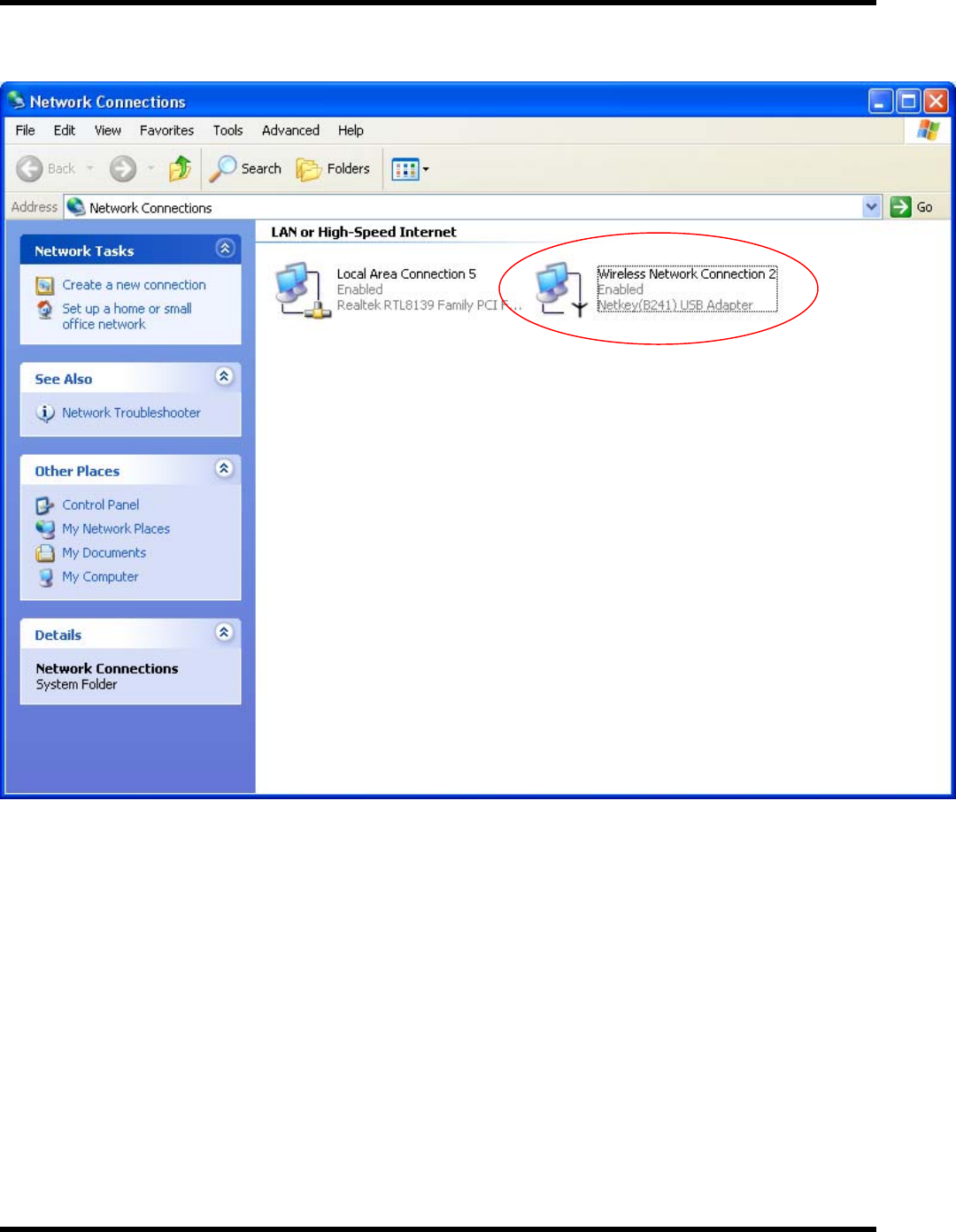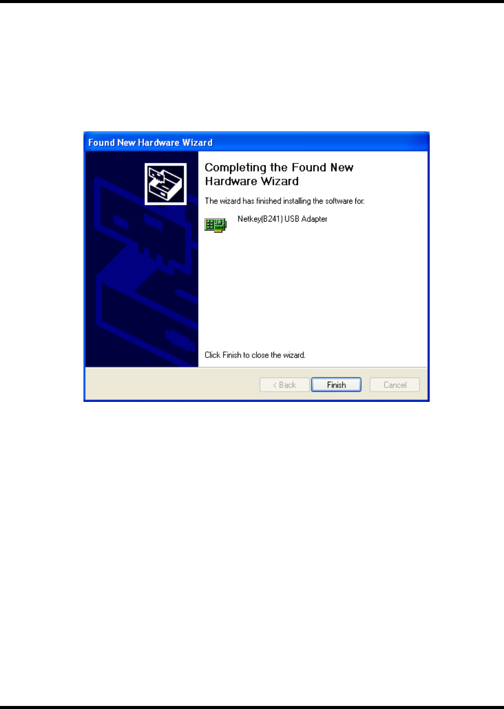 2. The Netkey network adapter will appear, indicating proper installation.