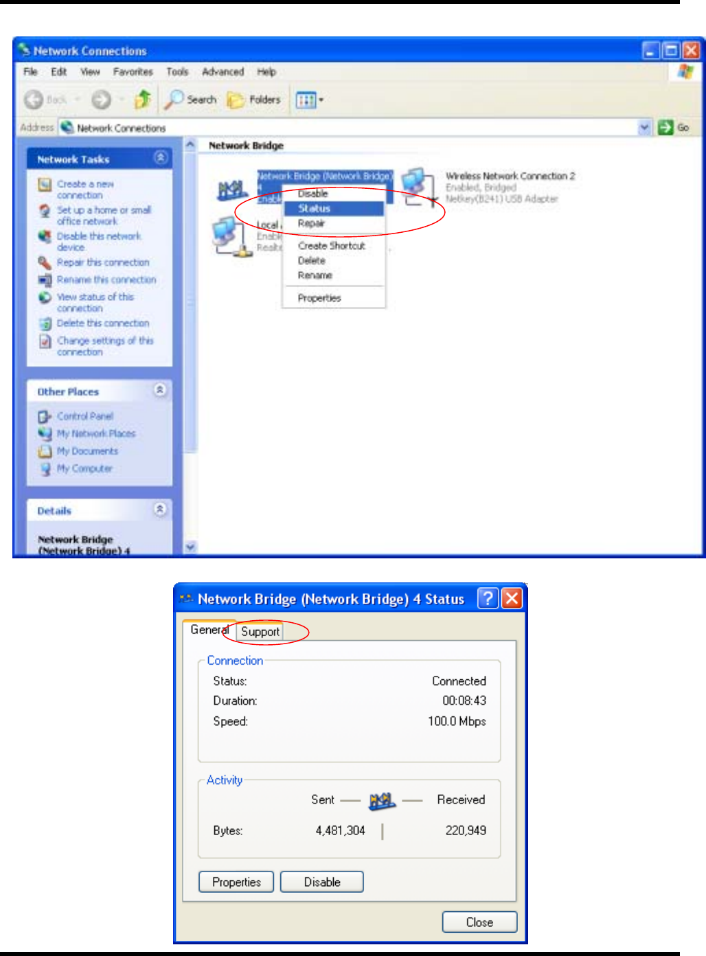 1. Go to START>CONTROL PANEL. Double-click on Network Connections. Right-click on LAN.