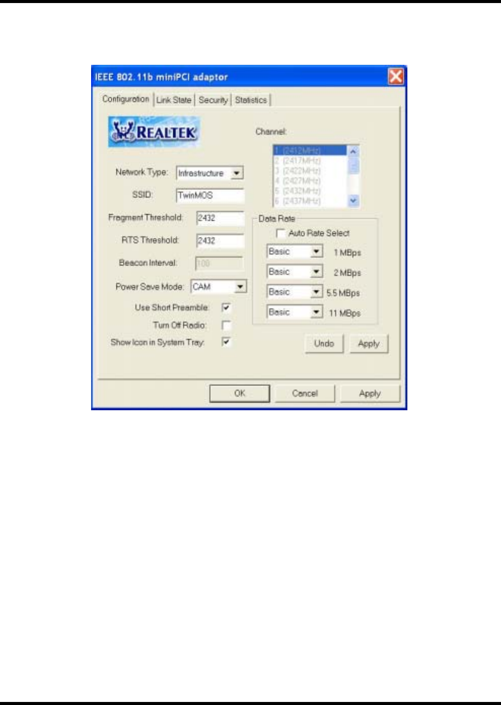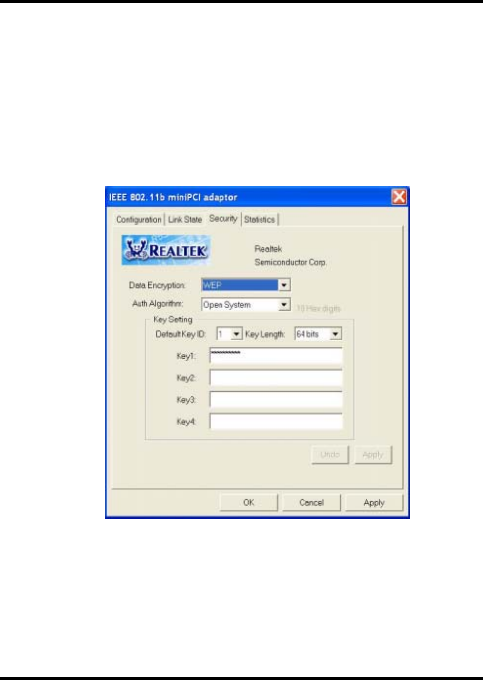•Realtek TKIP – Enable the TKIP Data Encryption. When the item is selected, you have to continue
