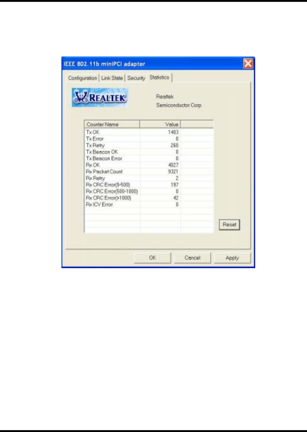 In the “Statistics”, you can get the real time information about the packet transmission and receiving