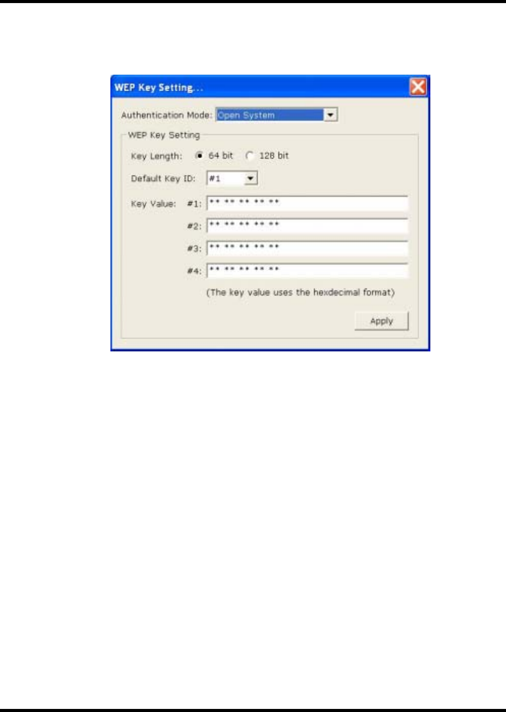 You may select the 64-bit or 128-bit to encrypt transmitted data. Larger key length will provide higher