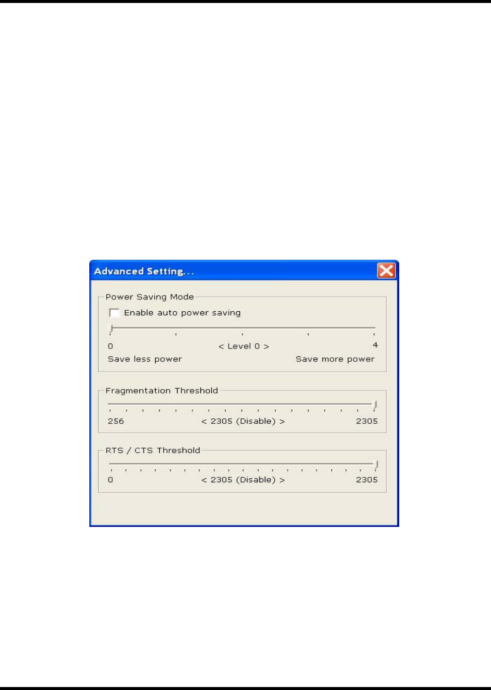 an RTS is not sent and the packet is transmitted directly to the WLAN. Select a setting within a range of