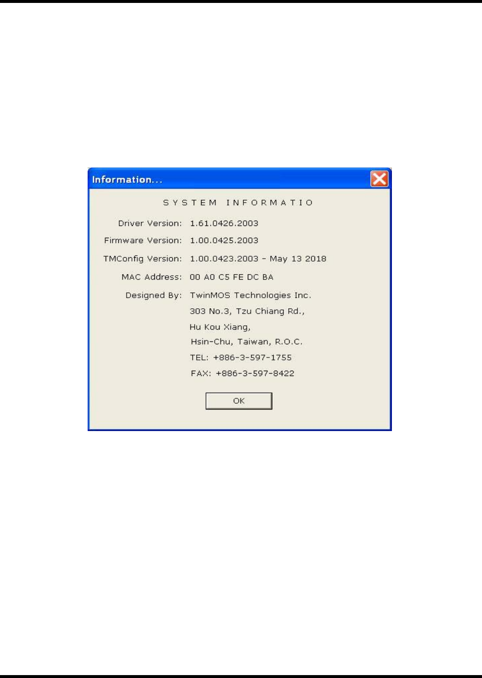 The Information Page provides information on the version of the Network Driver, the Configuration