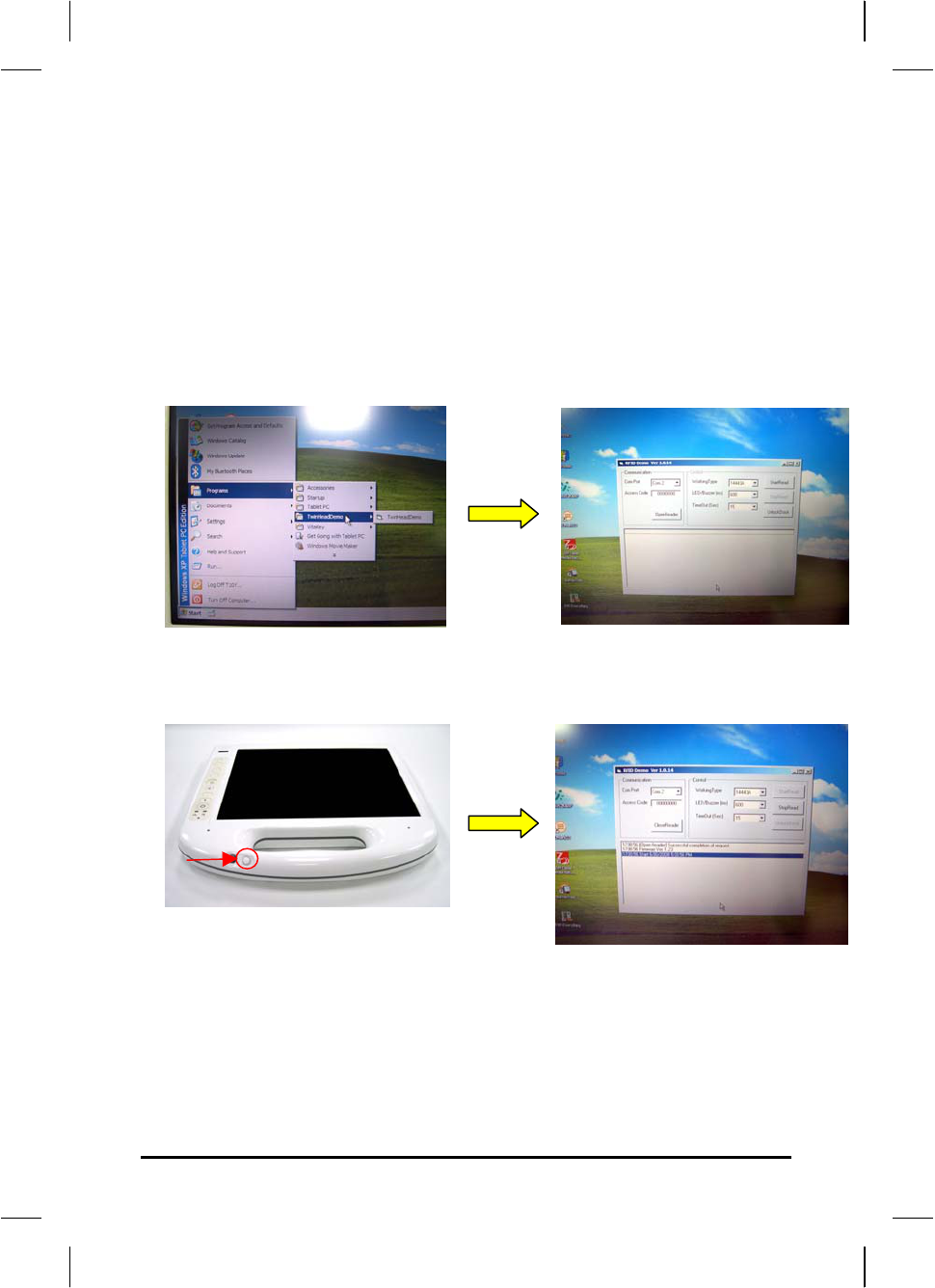 menu to execute RFID reader software.