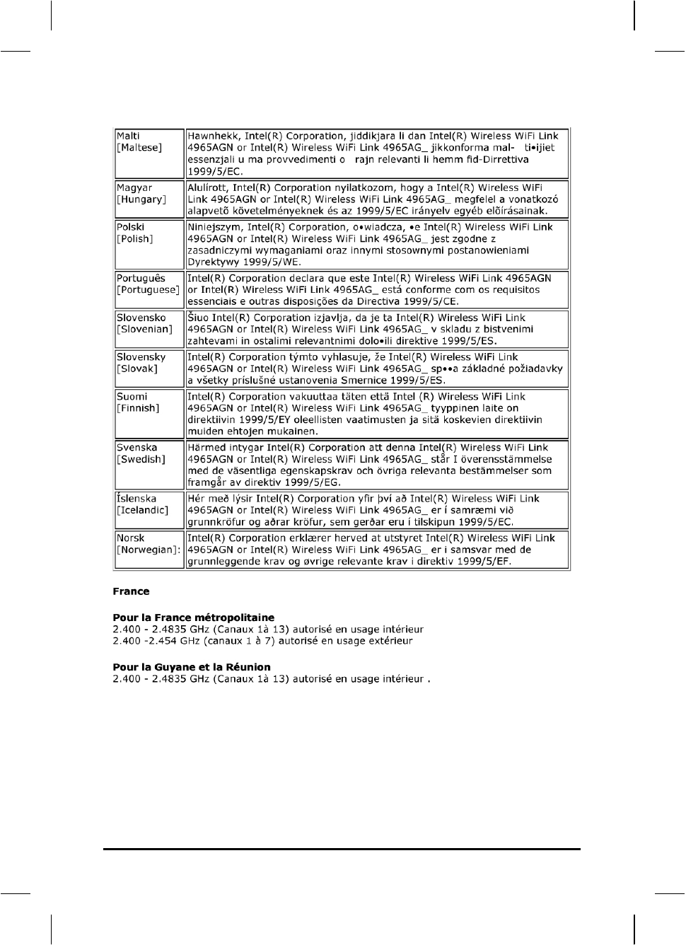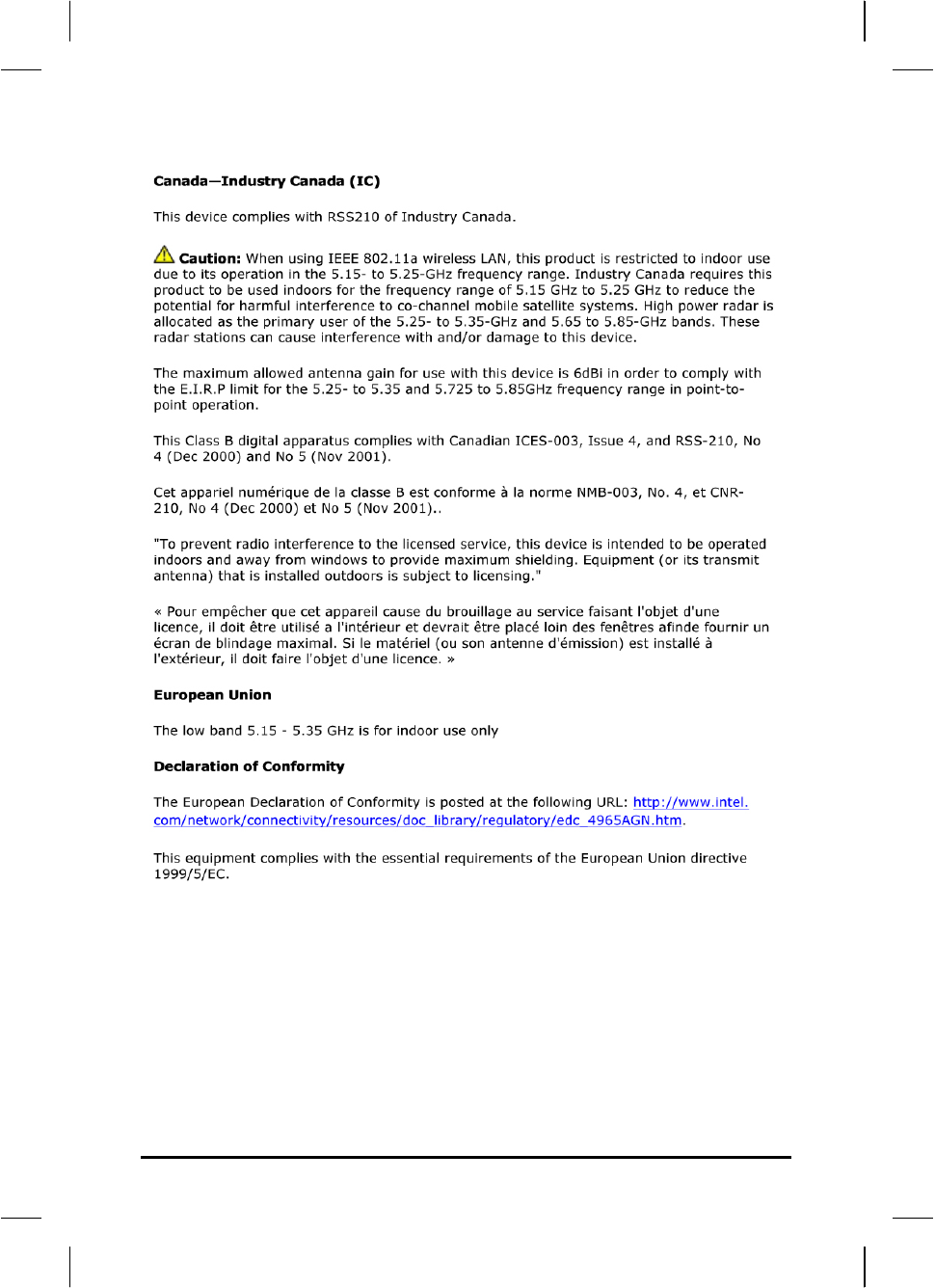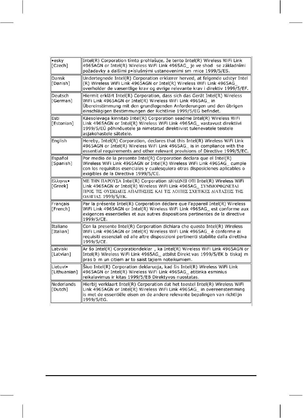 Regulatory statement (R&TTE / WLAN IEEE 802.11b