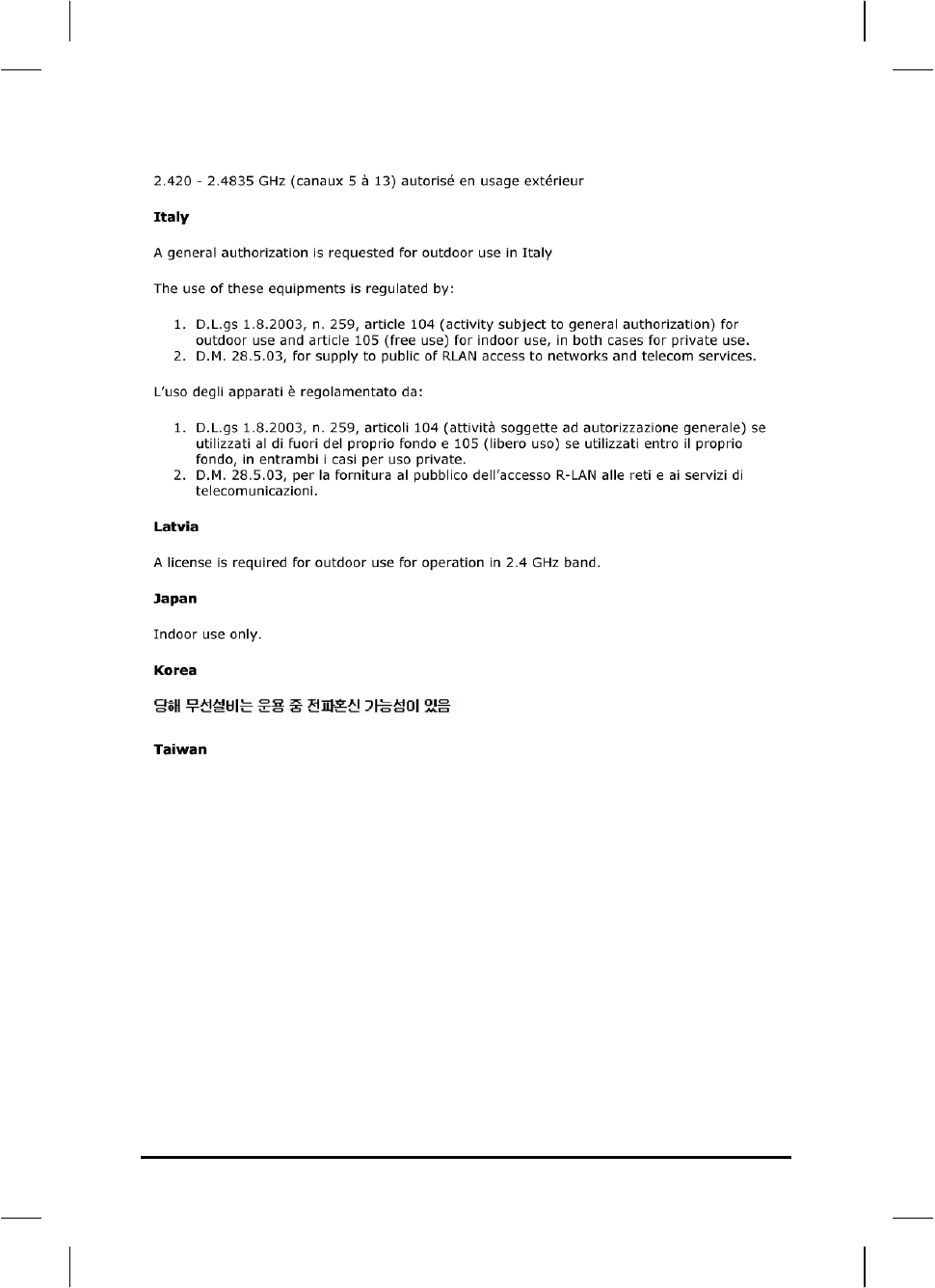 equipment must be restricted to the 2.4465-2.4835GHz frequency