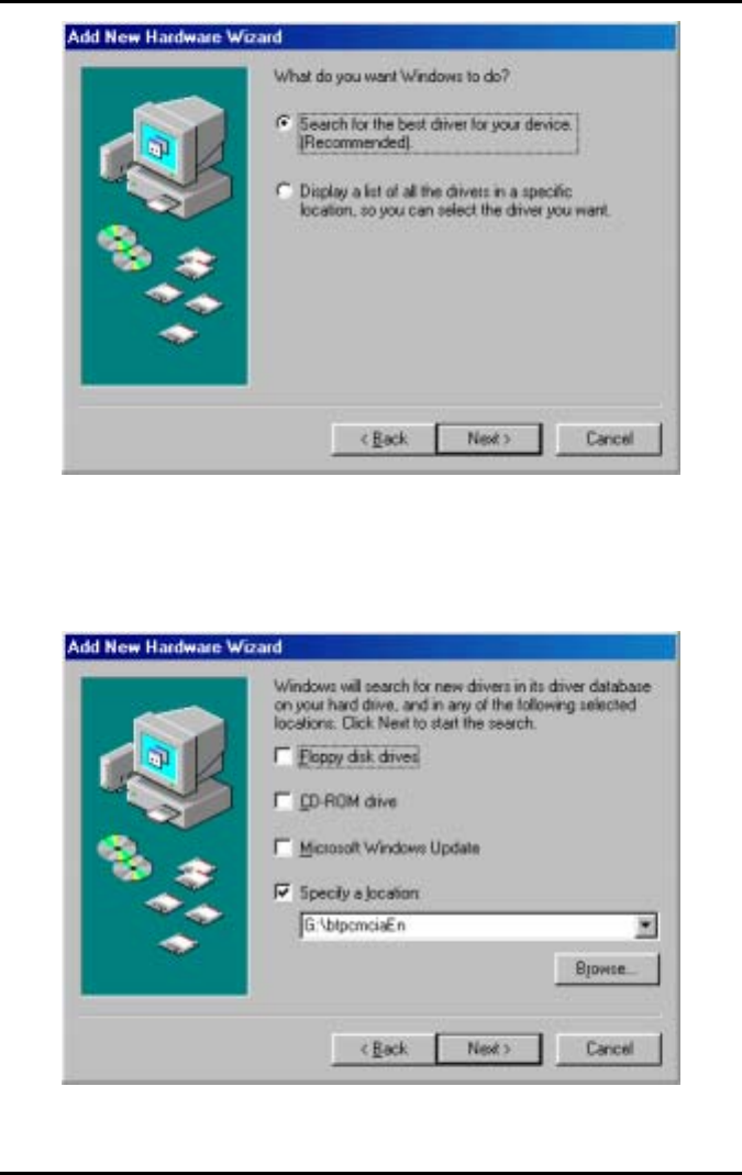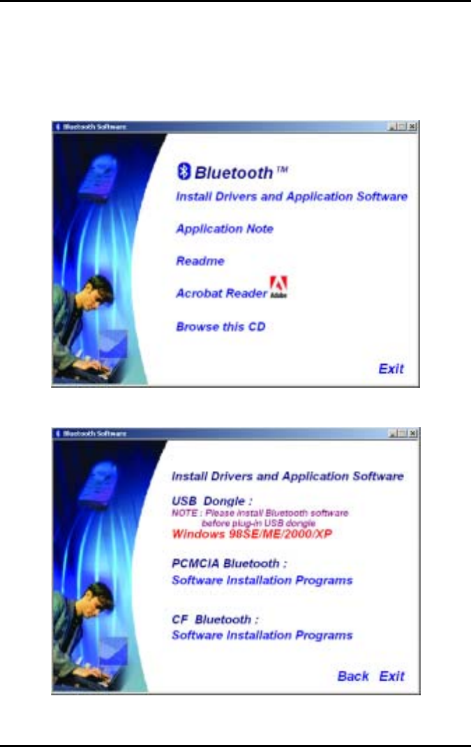 Bluetooth) or BTPCMCIAMe (for PCMCIA Bluetooth) of the driver CD.