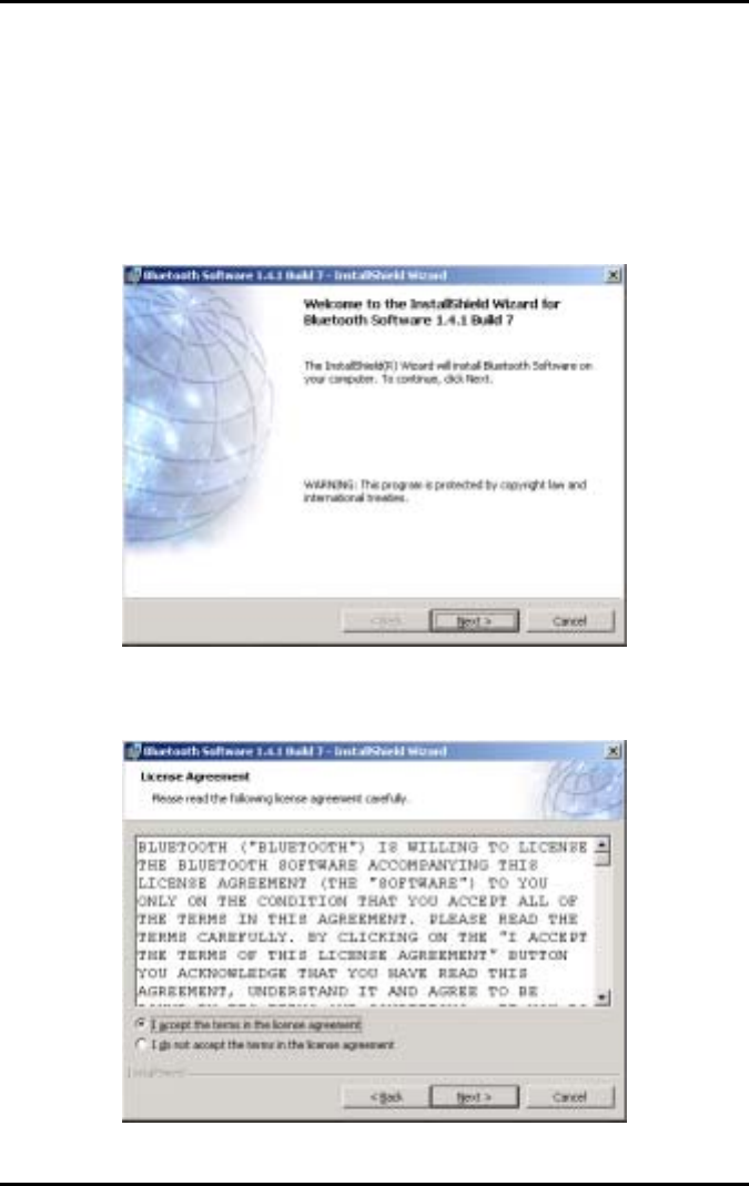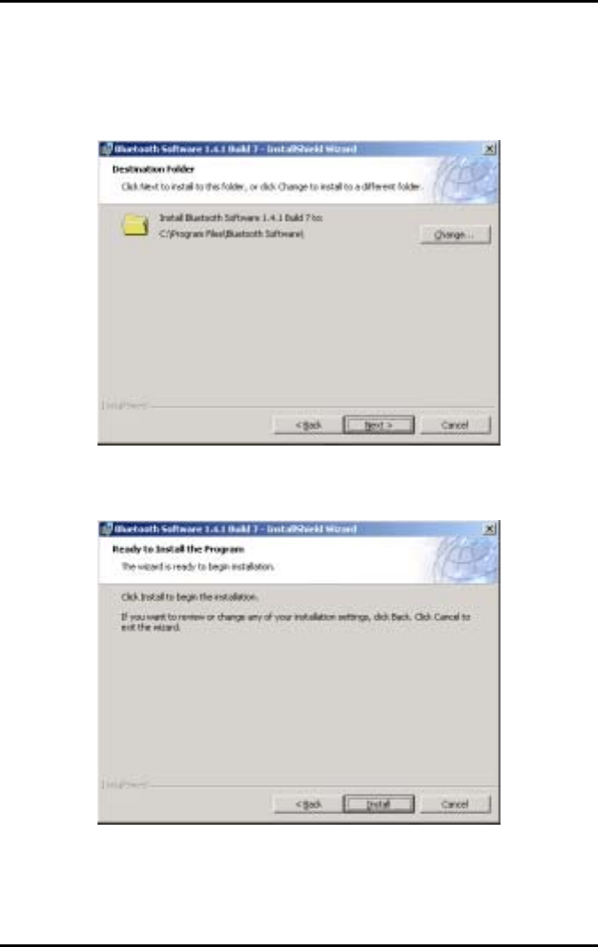 folder for the Bluetooth software. Otherwise, click the Next button to accept