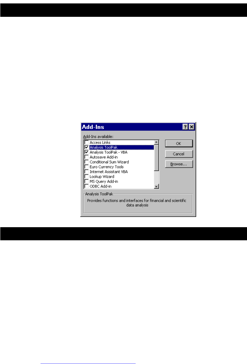 your Excel environment as desribed in page 5 of this document under
