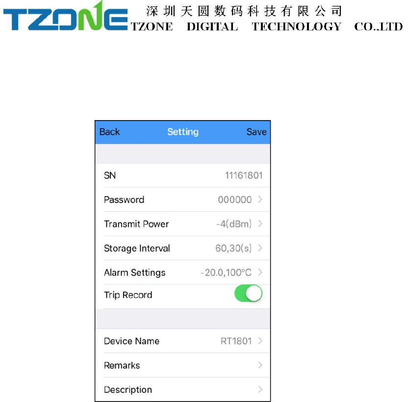 The interface can be configured BT04 transmit power, Normal/Alarm storage space,