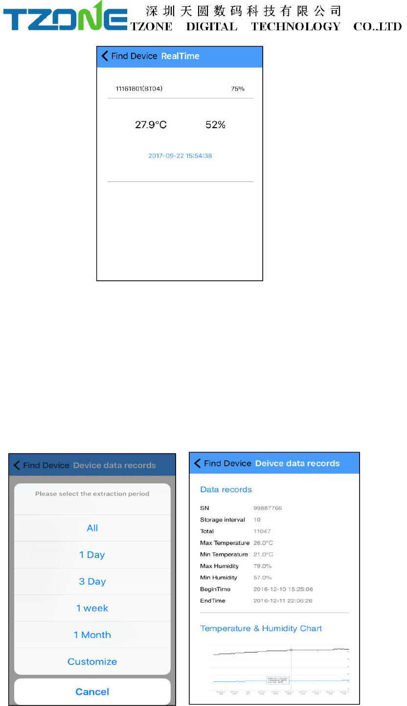 ‘Real time data’ displays the device name, real-time temperature&humidity and