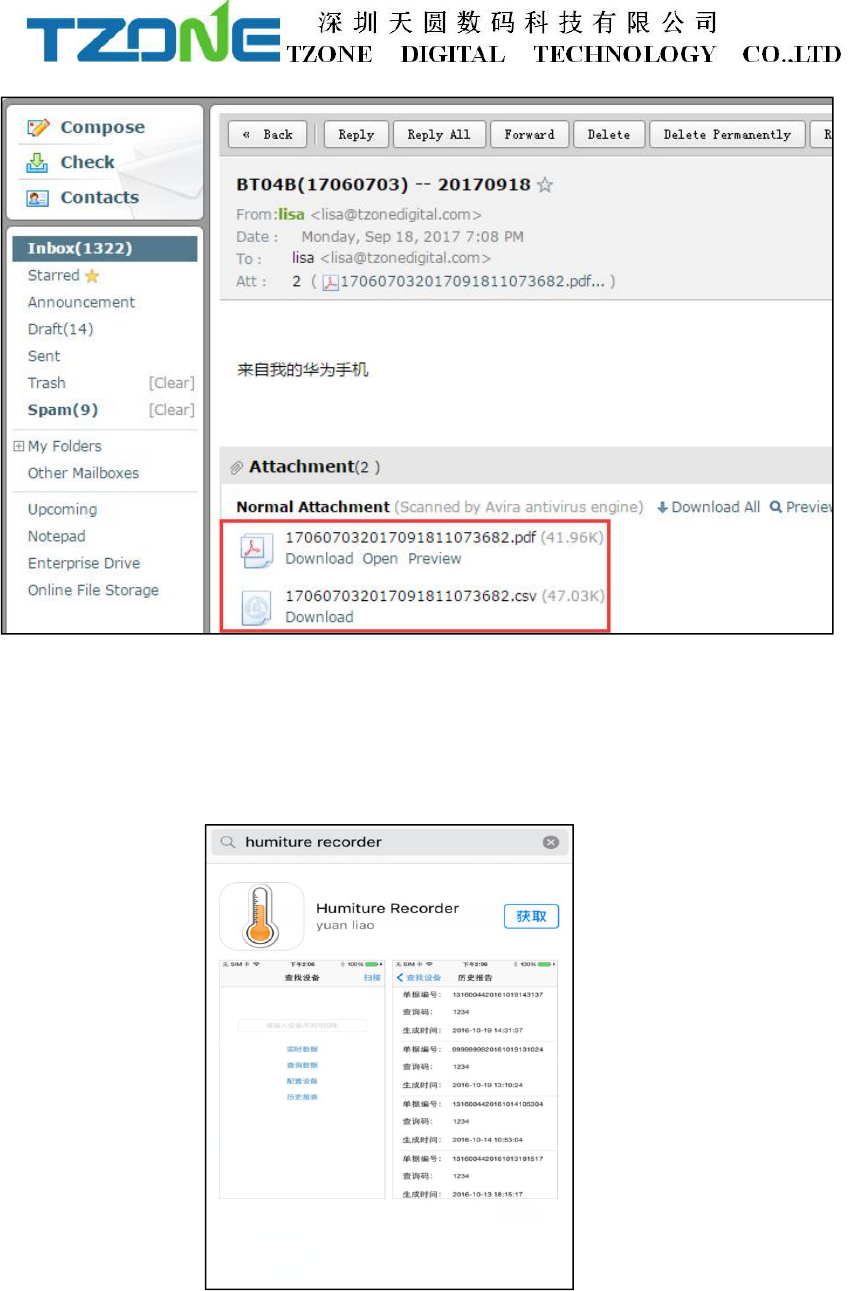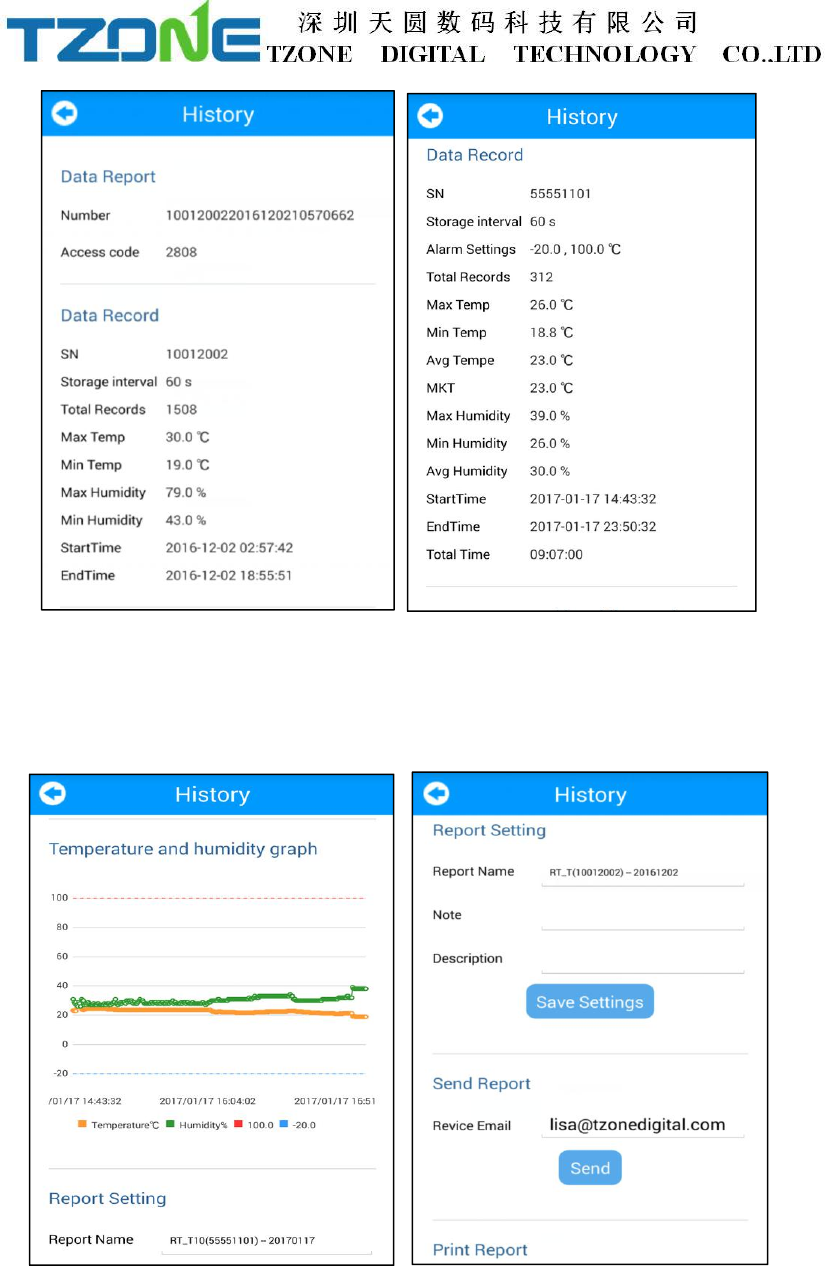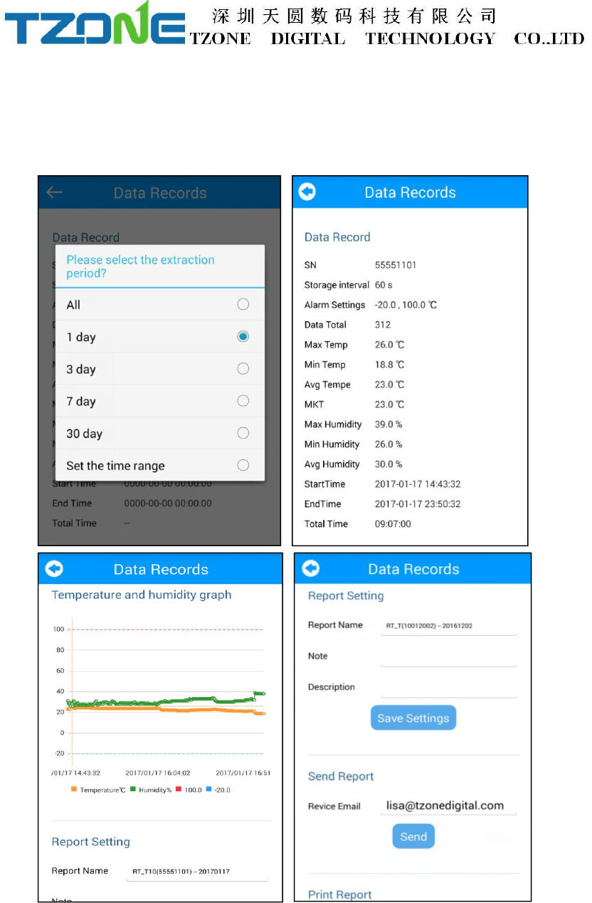 data. BT04 can store up to 12000 pieces of the temperature and humidity data. Mobile