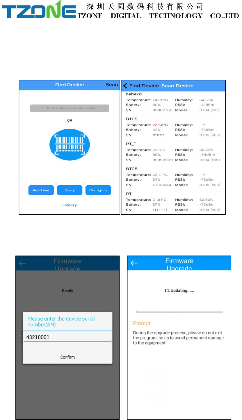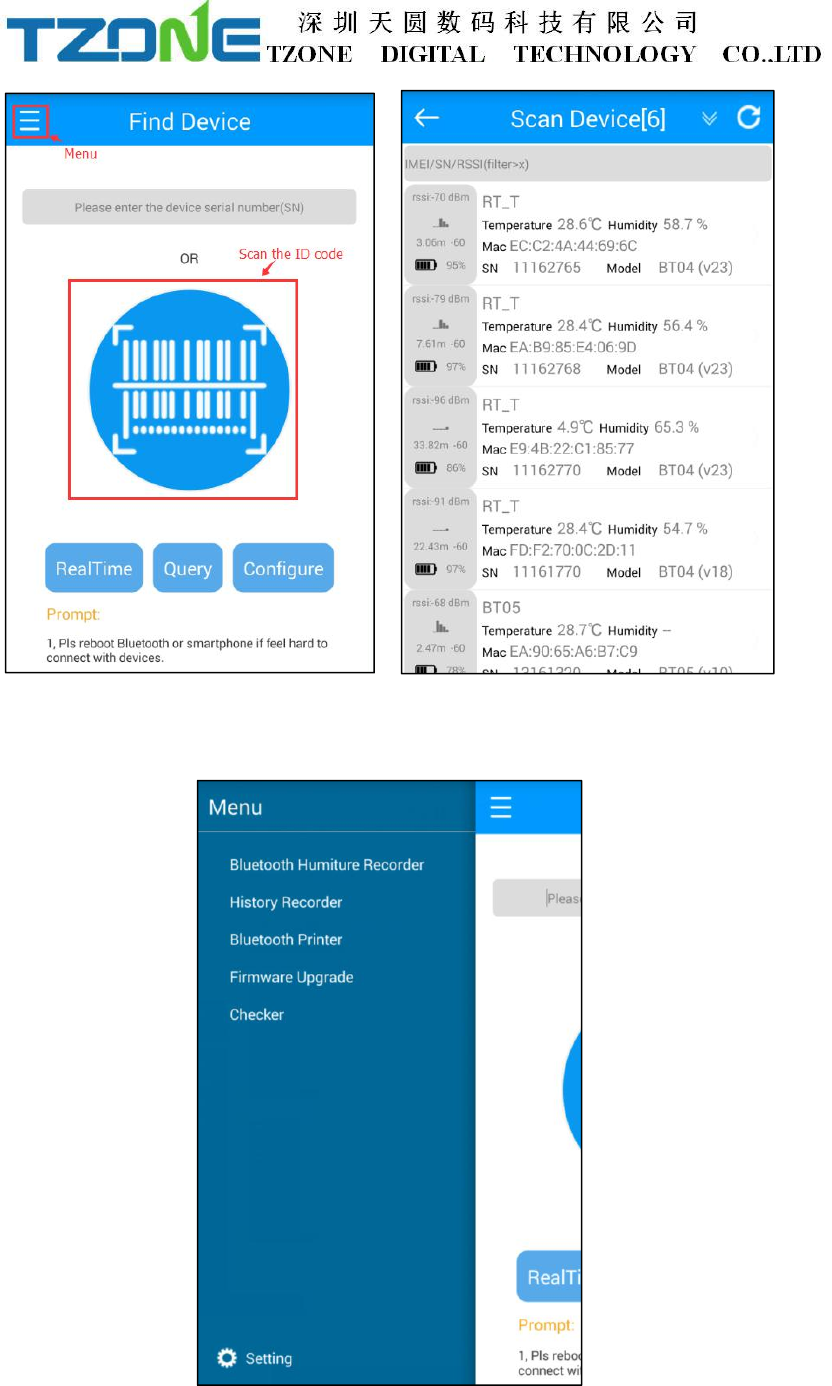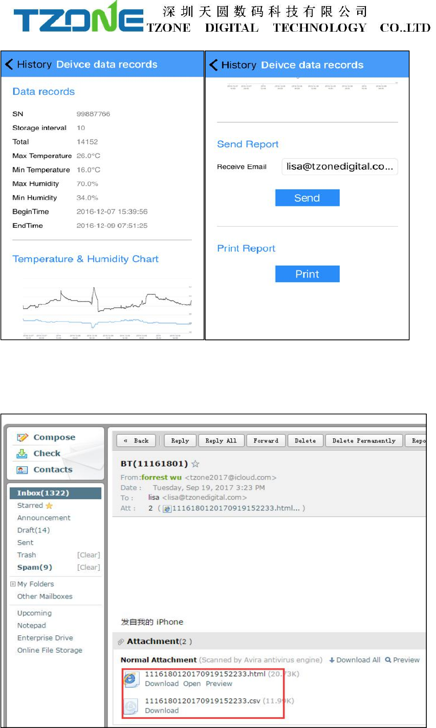 data. BT04 can store up to 12000 pieces of the temperature and humidity data. Mobile