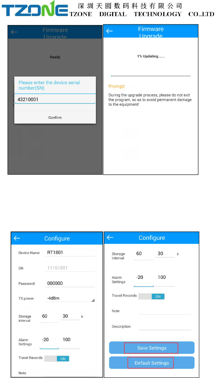 Normal/Alarm storage space(10~3600s), and the upper and lower temperature
