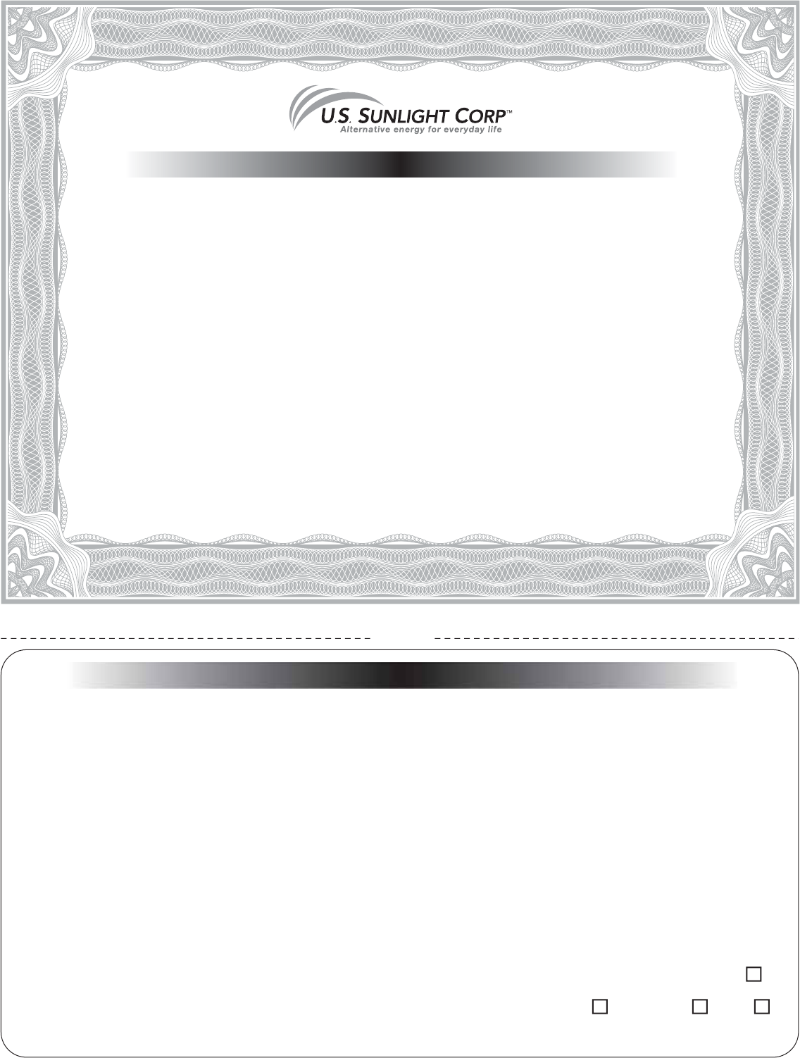 Copyright 2011 US Sunlight Corp, Inc. REV A 1/2011 ver 1