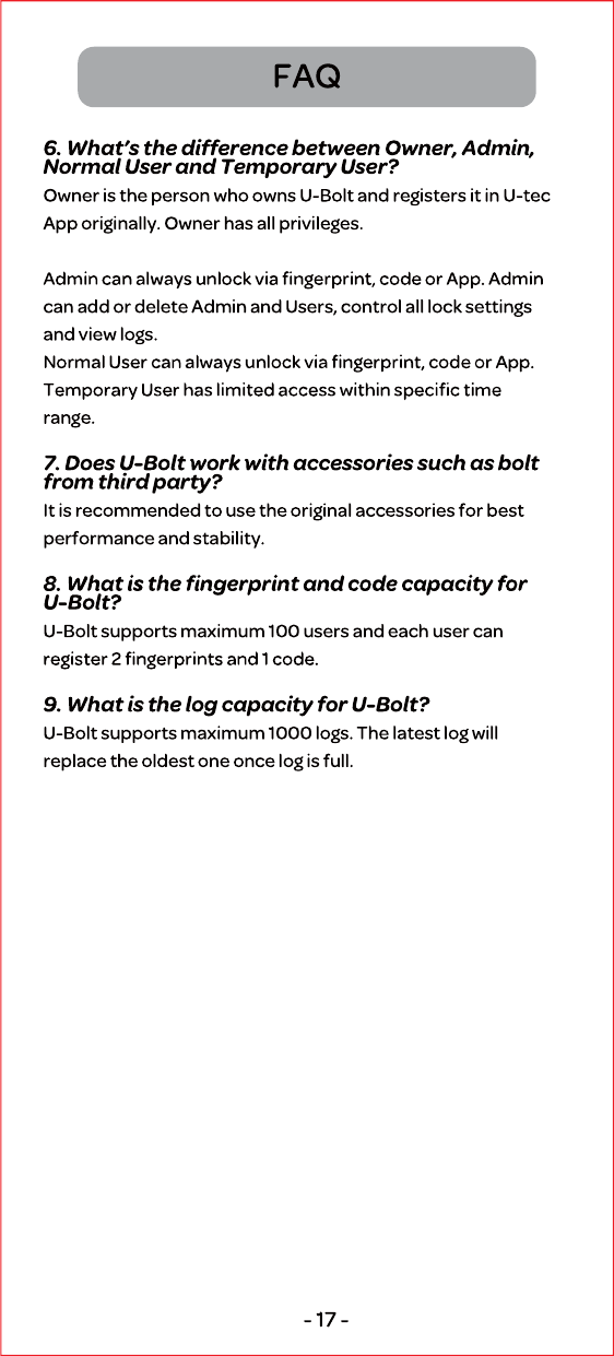 U tec Group UBOLT Ultraloq Smart Lock with Bluetooth User Manual U Bolt