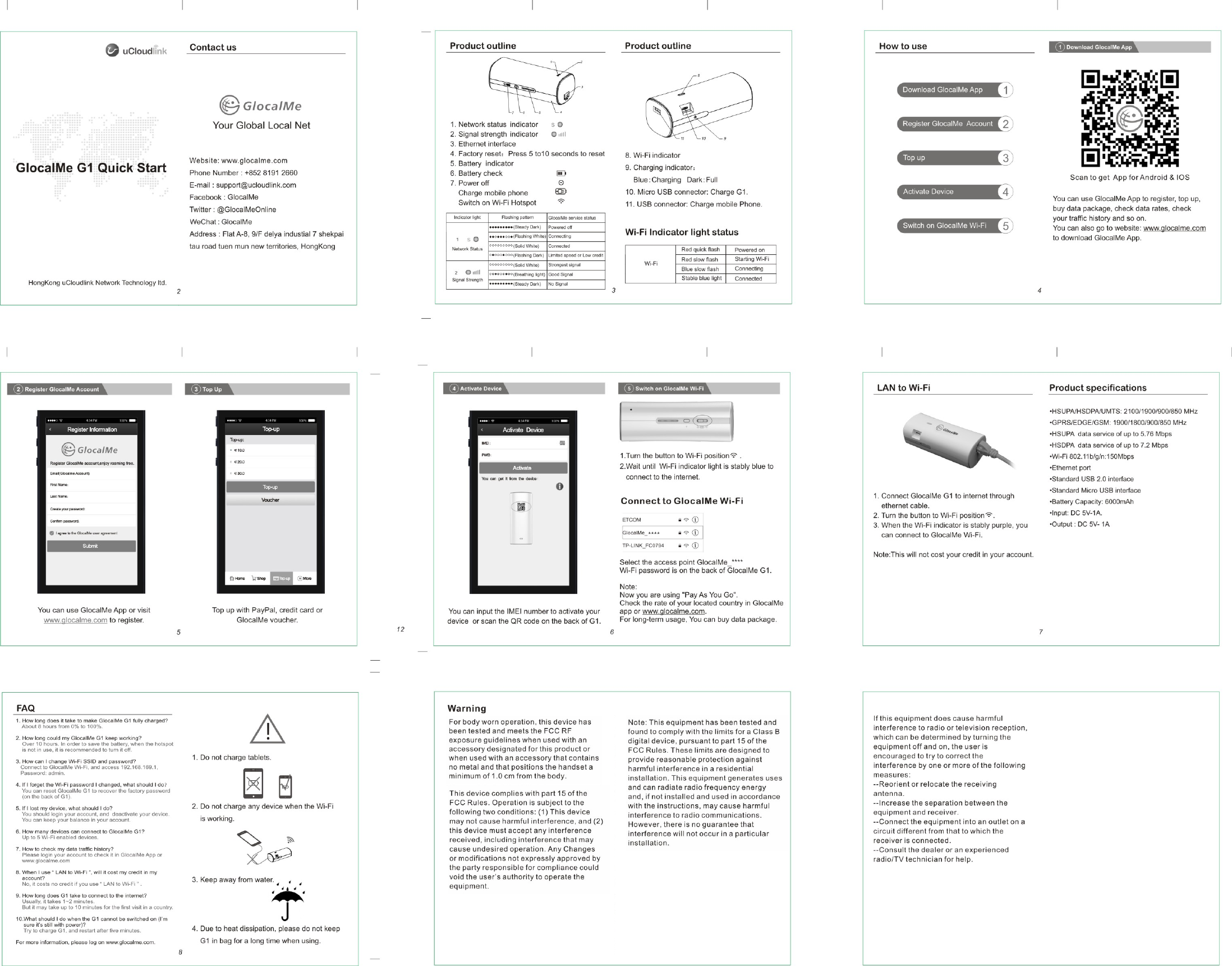UCLOUDLINK NETWORK TECHNOLOGY G1 3G Free Roaming Hotspot User Manual