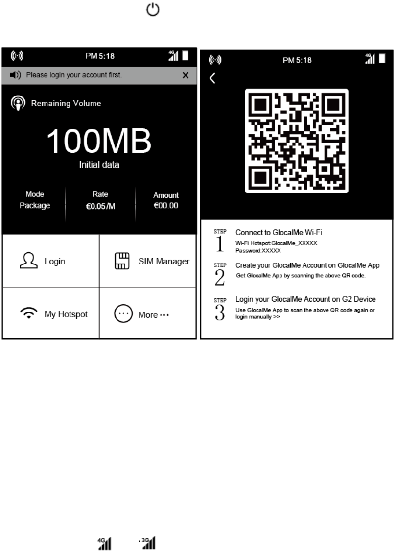 AfterloginingyourG1611,thescreenwillshowtheamount,Wi‐Finameandpassword.When