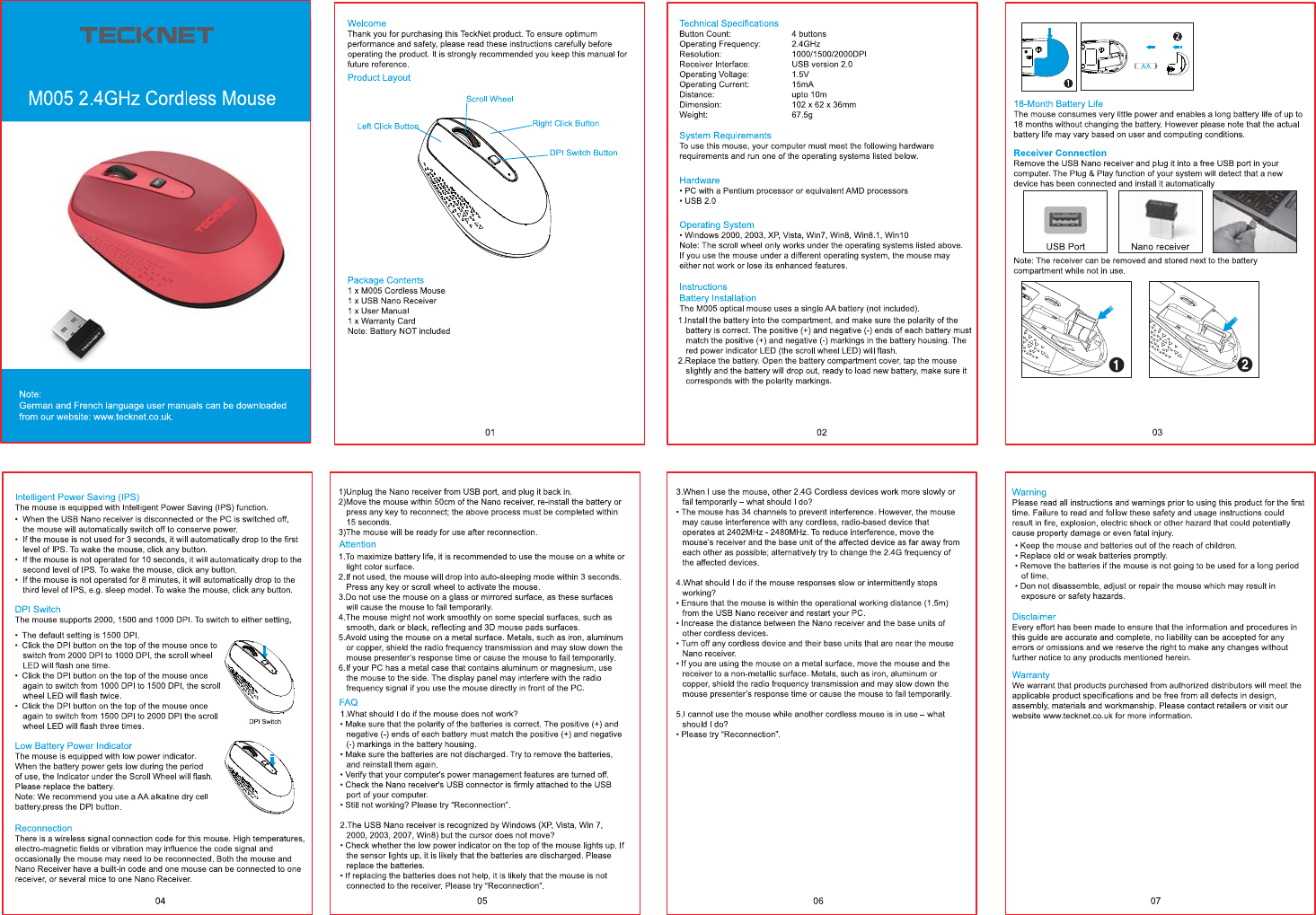 Unichain Technology M005 Cordless Mouse User Manual M005