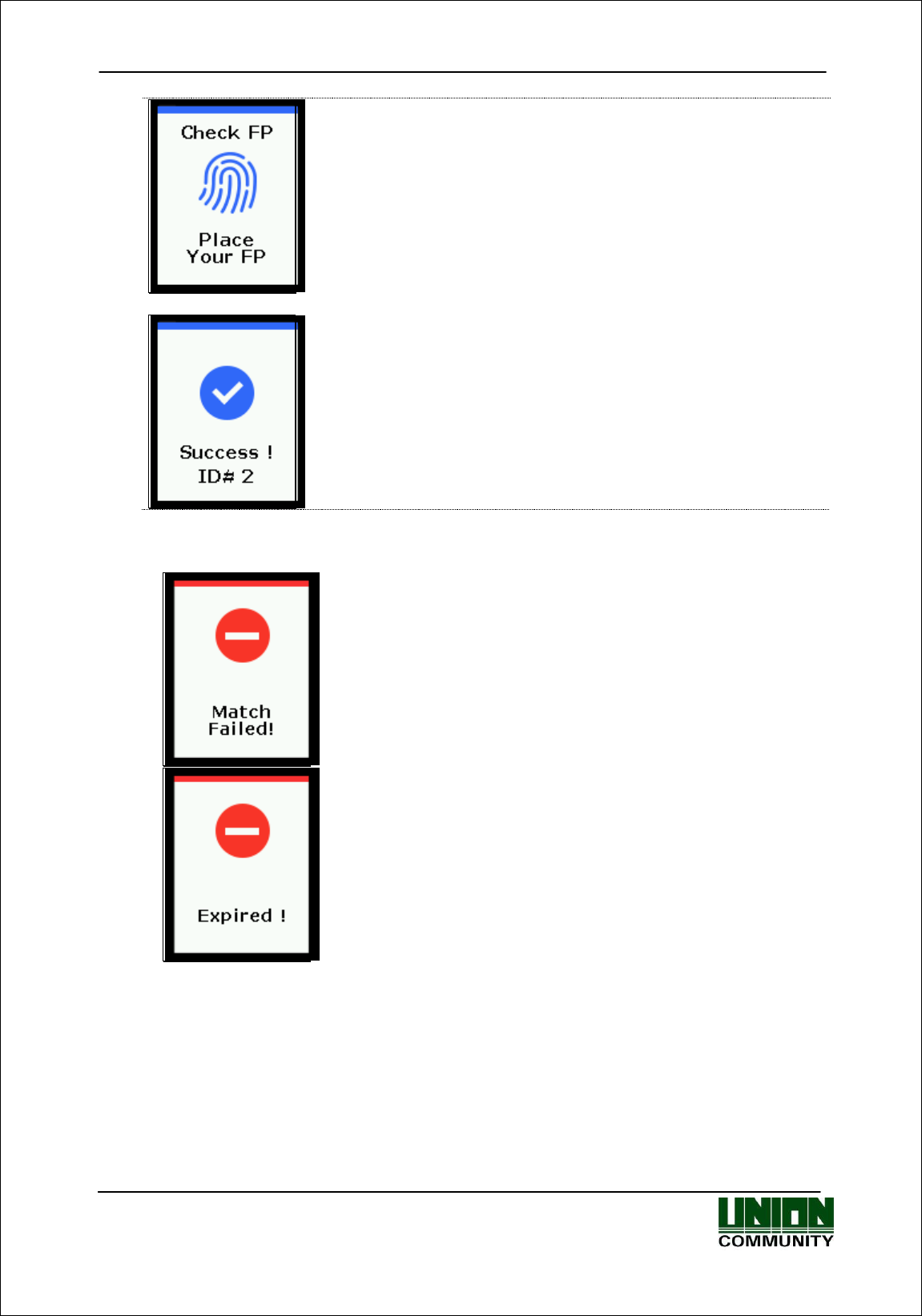 and the beep sound will occur and the authentication result will displayed on the LCD.